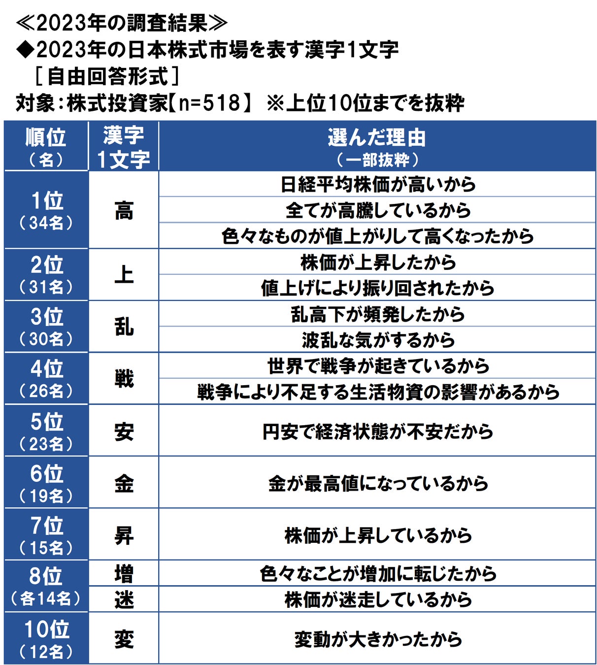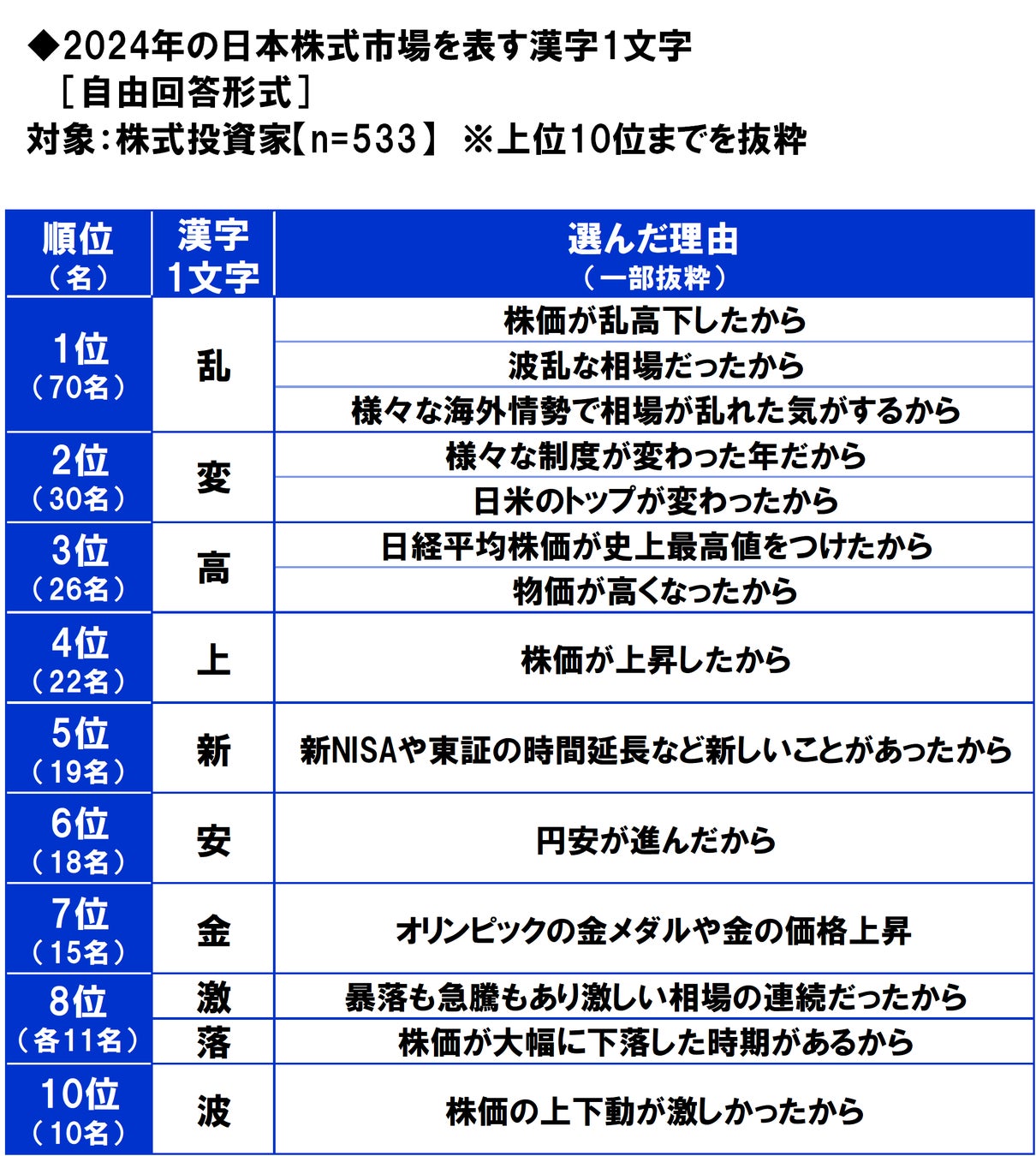 ◆2024年の“日本株式市場を表す漢字” 1位「乱」2位「変」