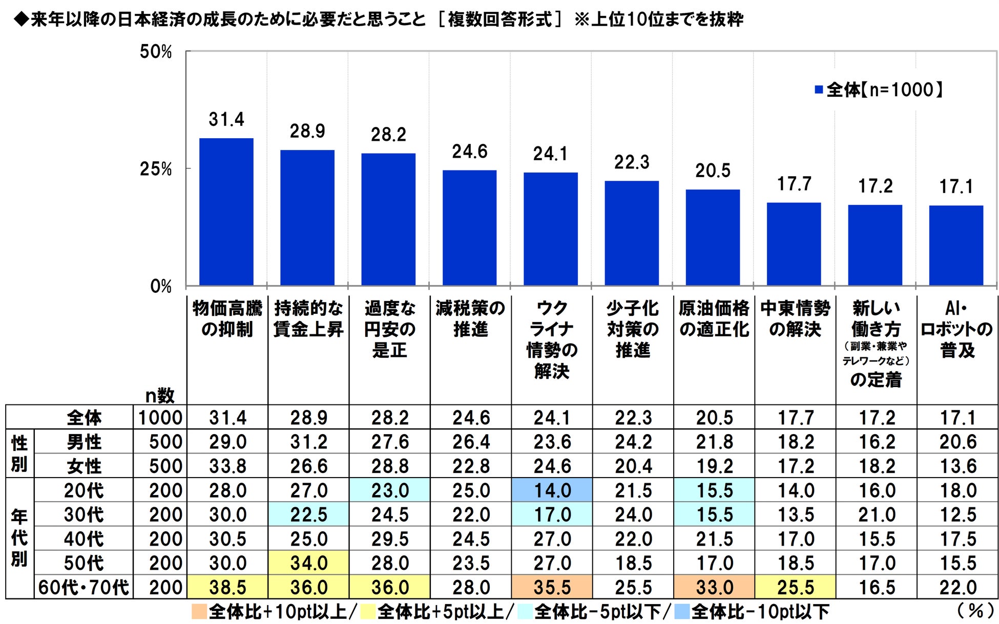 ◆投資経験者が来年以降の日本経済成長のために必要だと思うこと 1位「物価高騰の抑制」
