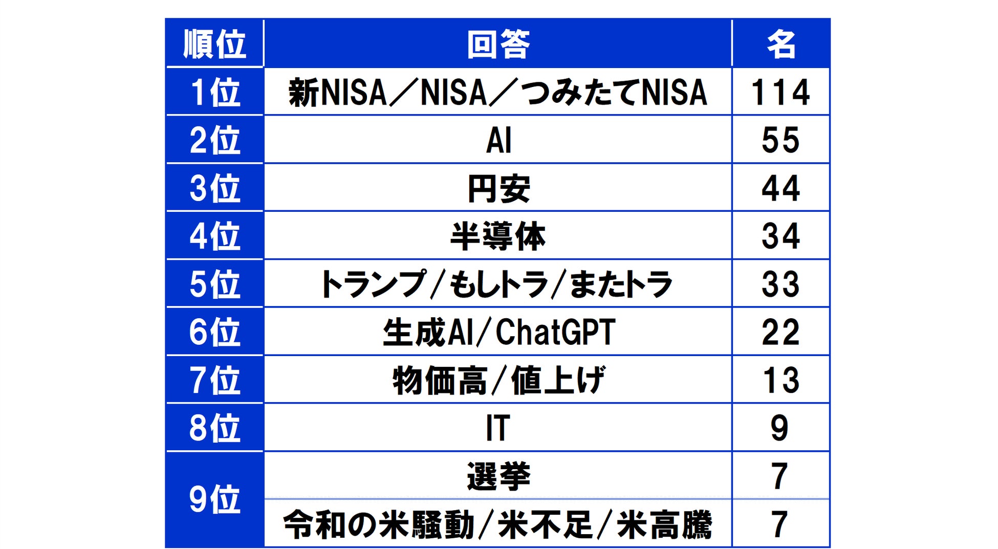 2024年の経済分野の流行語 1位「新NISA/NISA/つみたてNISA」 “与党過半数割れ”&“またトラ”が2025年日本株式市場に与える影響は?