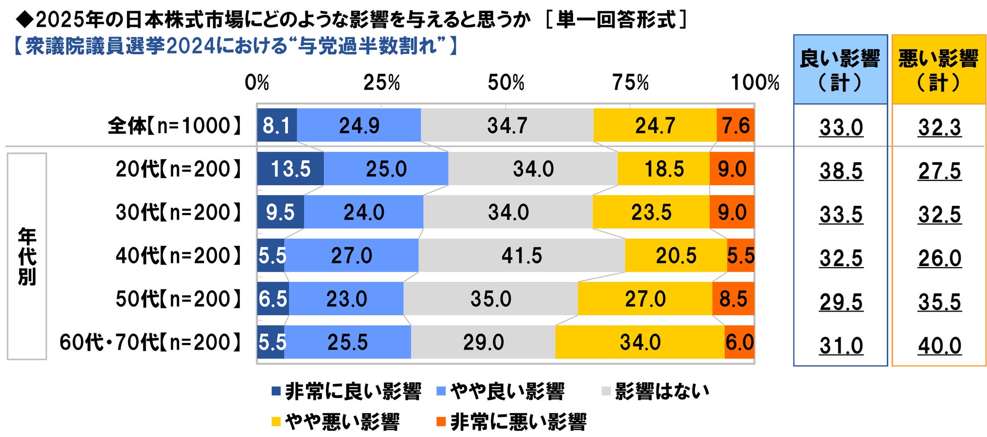 ◆“与党過半数割れ”が2025年日本株式市場に与える影響 投資経験者の33%が「良い影響」と予想