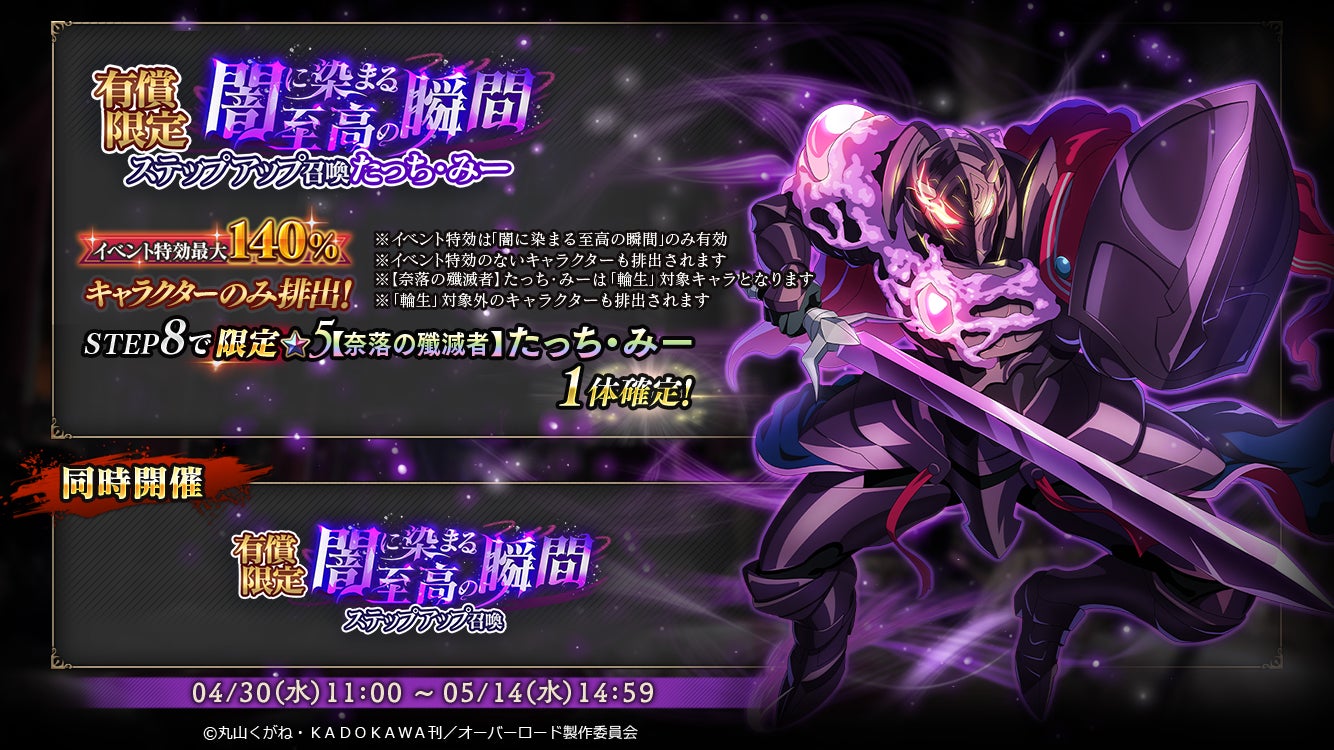 ■イベント召喚『有償限定闇に染まる至高の瞬間ステップアップ召喚-たっち・みー-』開催!