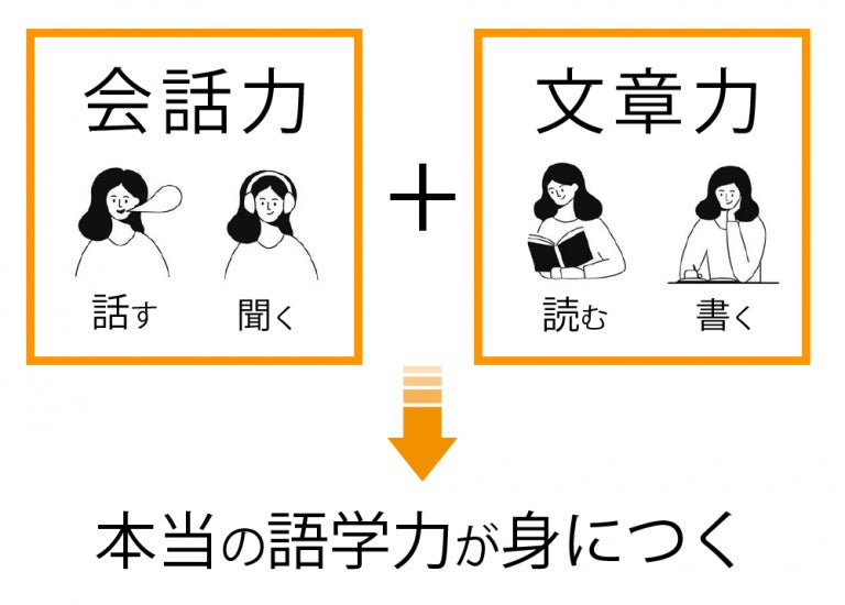 会話力(話す・聞く)+文章力(読む・書く)で本当の語学力が身につきます