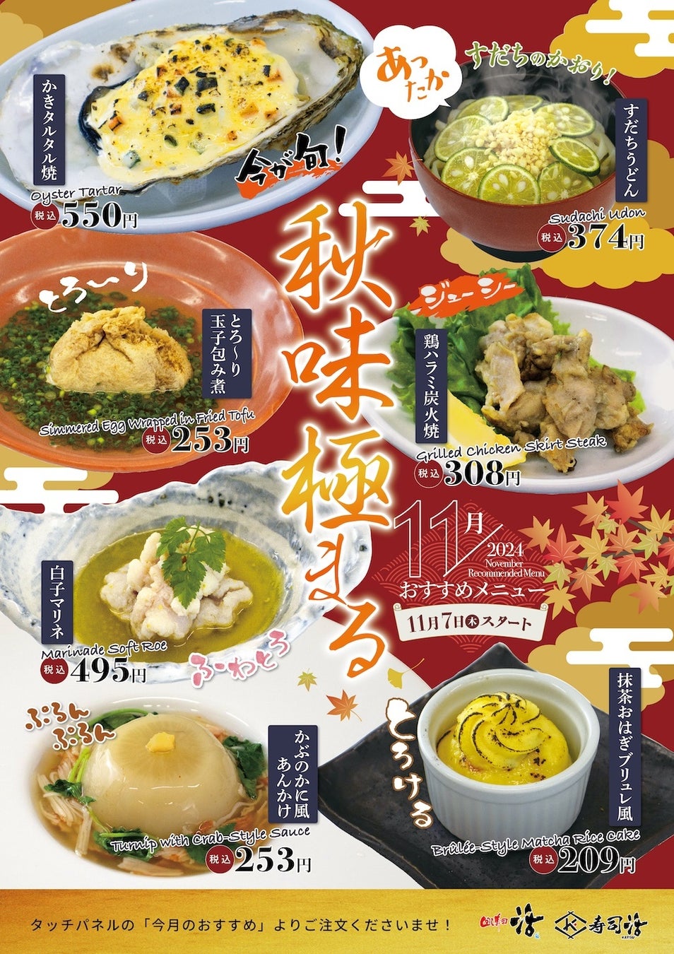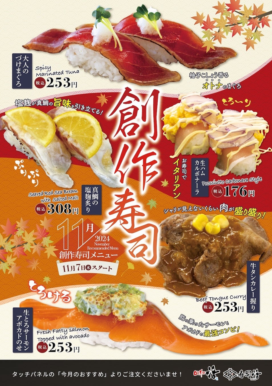 株式会社活美登利(本社:東京都品川区、代表取締役社長:土屋秀仁)が運営する「回し寿司活/寿司活」は、運営店舗全店で11月7日(木)より創作寿司フェアを実施いたします。