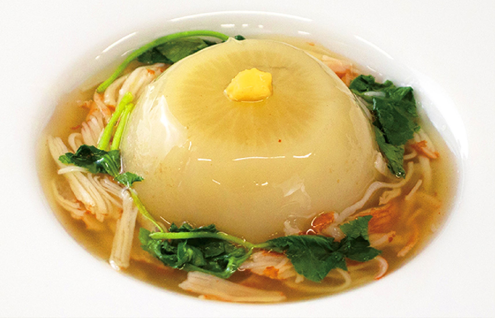 かぶに風味豊かなあんをかけた、季節感あふれる料理です。