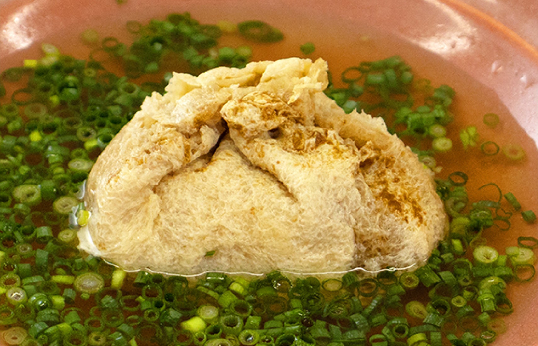 油揚げで包んだ玉子がとろ〜りと出てくる一品。優しい味わいに仕上げました。