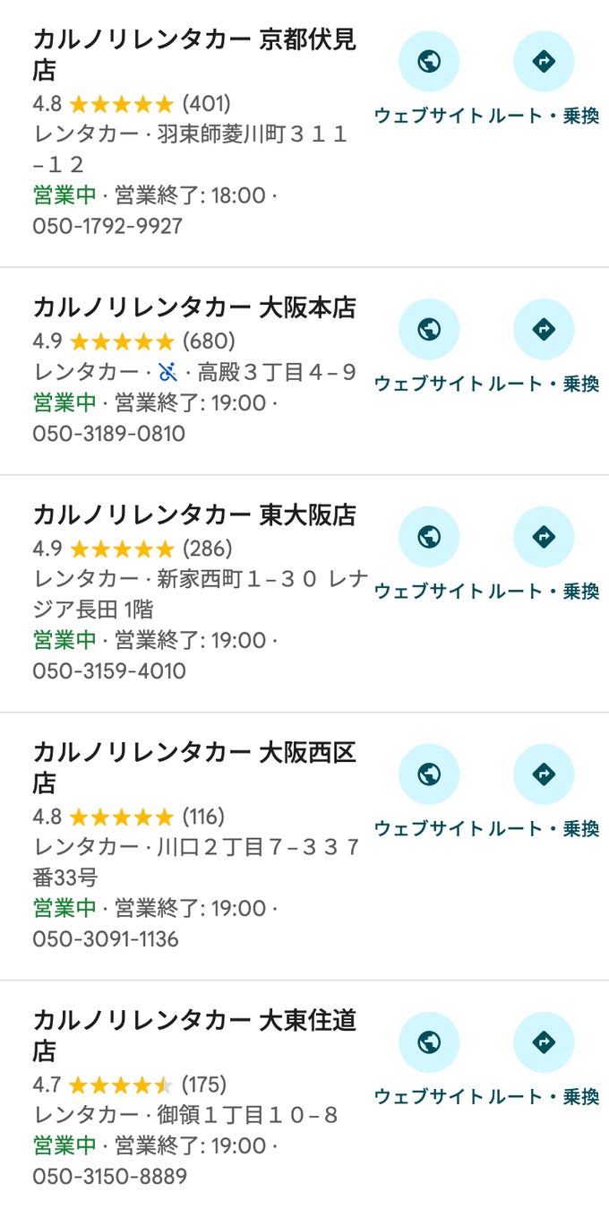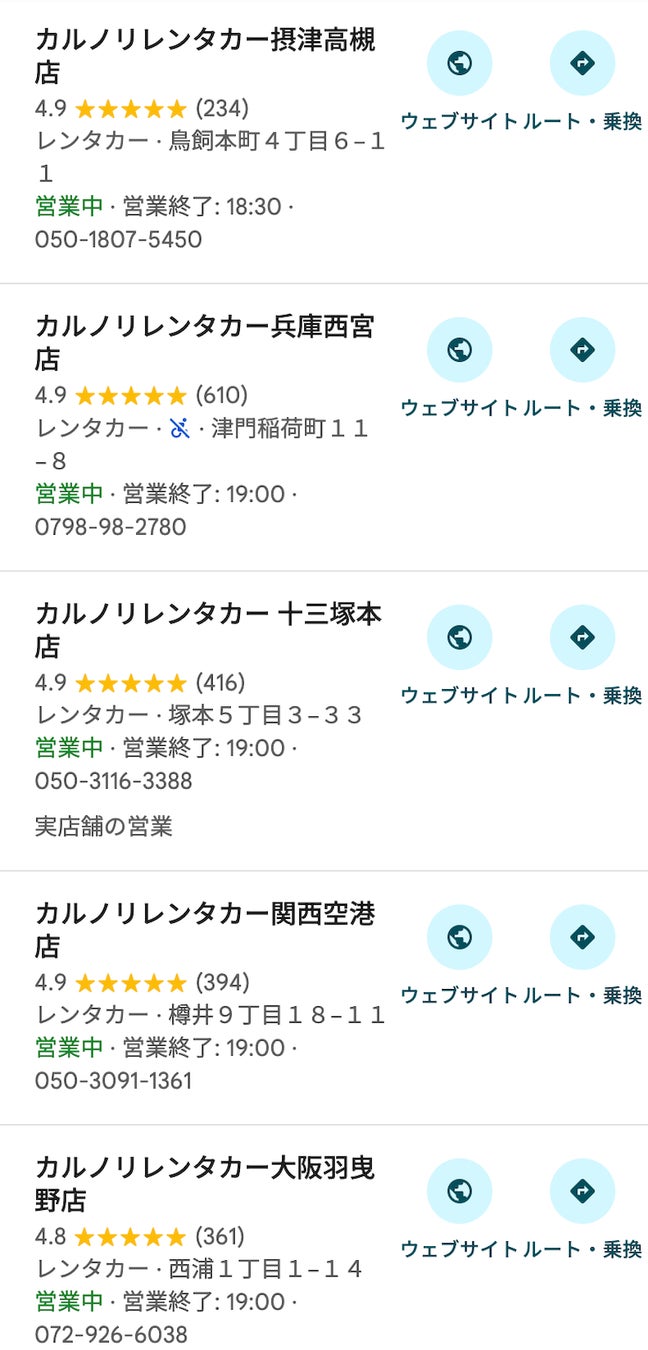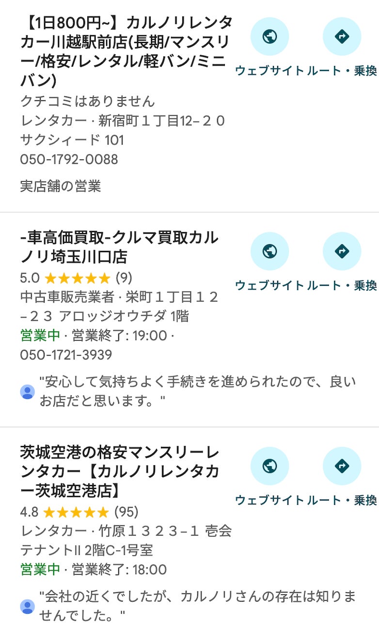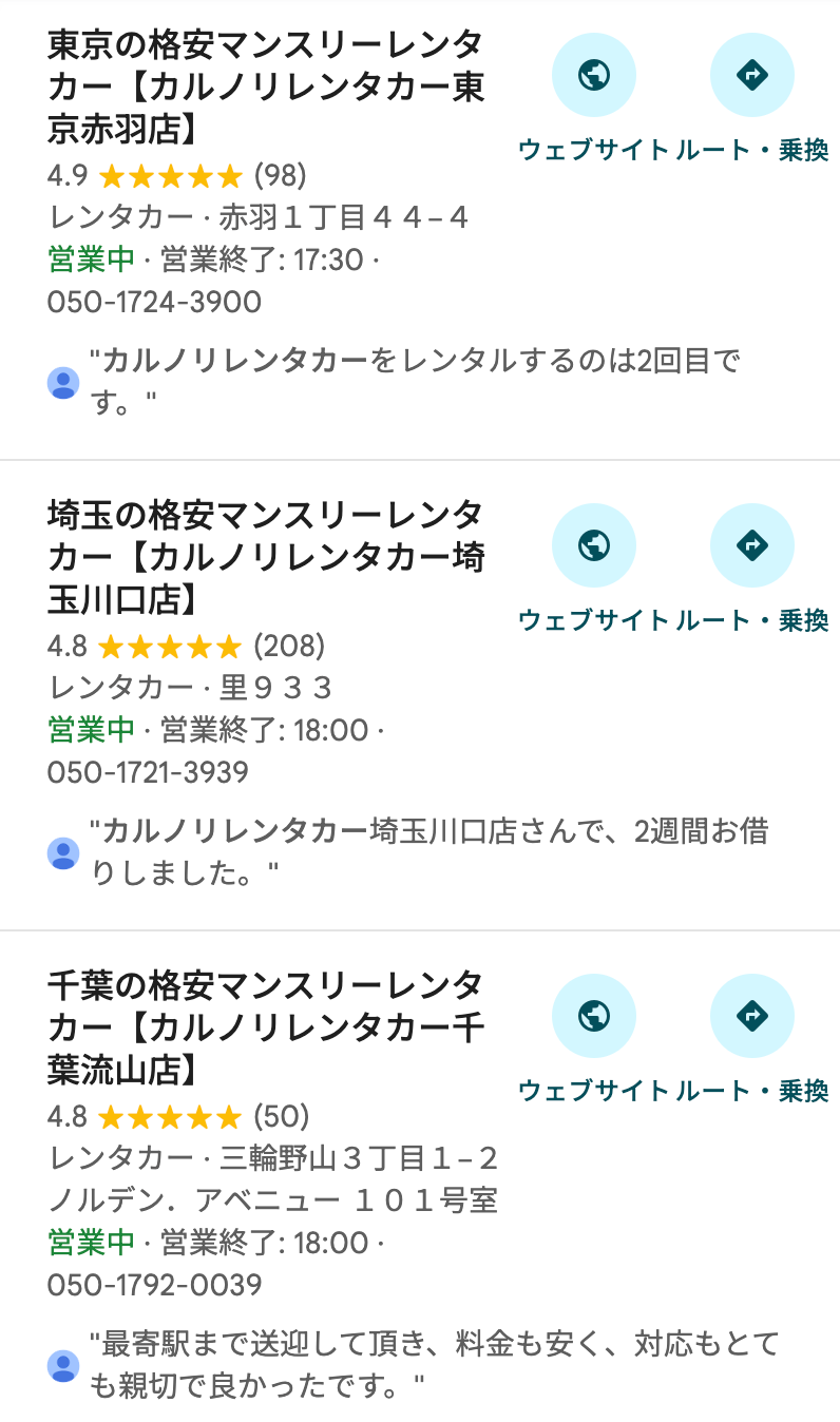 カルノリレンタカー川越駅前店の特徴③:格安でも高品質|Google口コミで高評価を多数獲得
