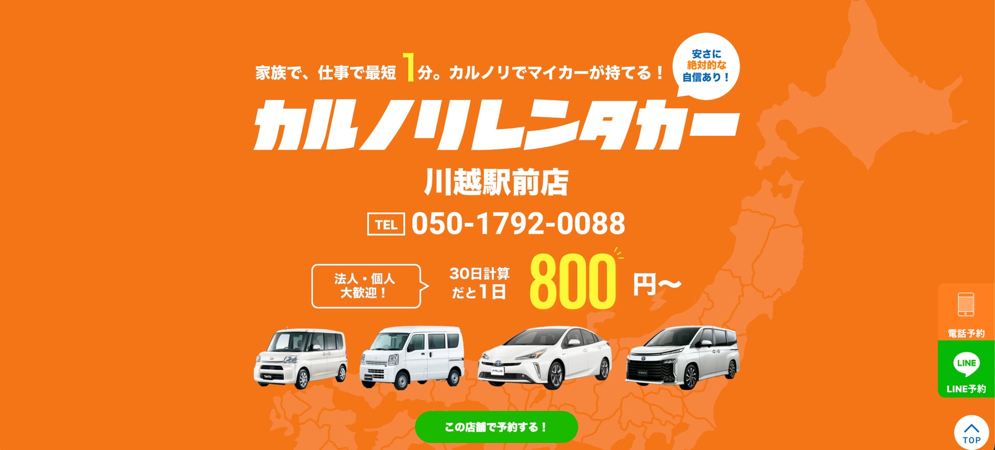 埼玉県川越市や、さいたま市・富士見市・所沢市・ふじみ野市・狭山市でレンタカーをお探しの方は、ぜひカルノリレンタカー川越駅前店をご利用ください。