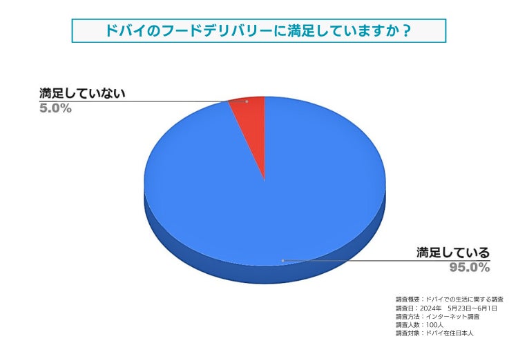 弊社が運営する『ドバイ総合研究所』は、ドバイ在住の日本人を対象に「ドバイのフードデリバリーに対する満足度」についてアンケート調査を実施しました。結果は以下の通りです。