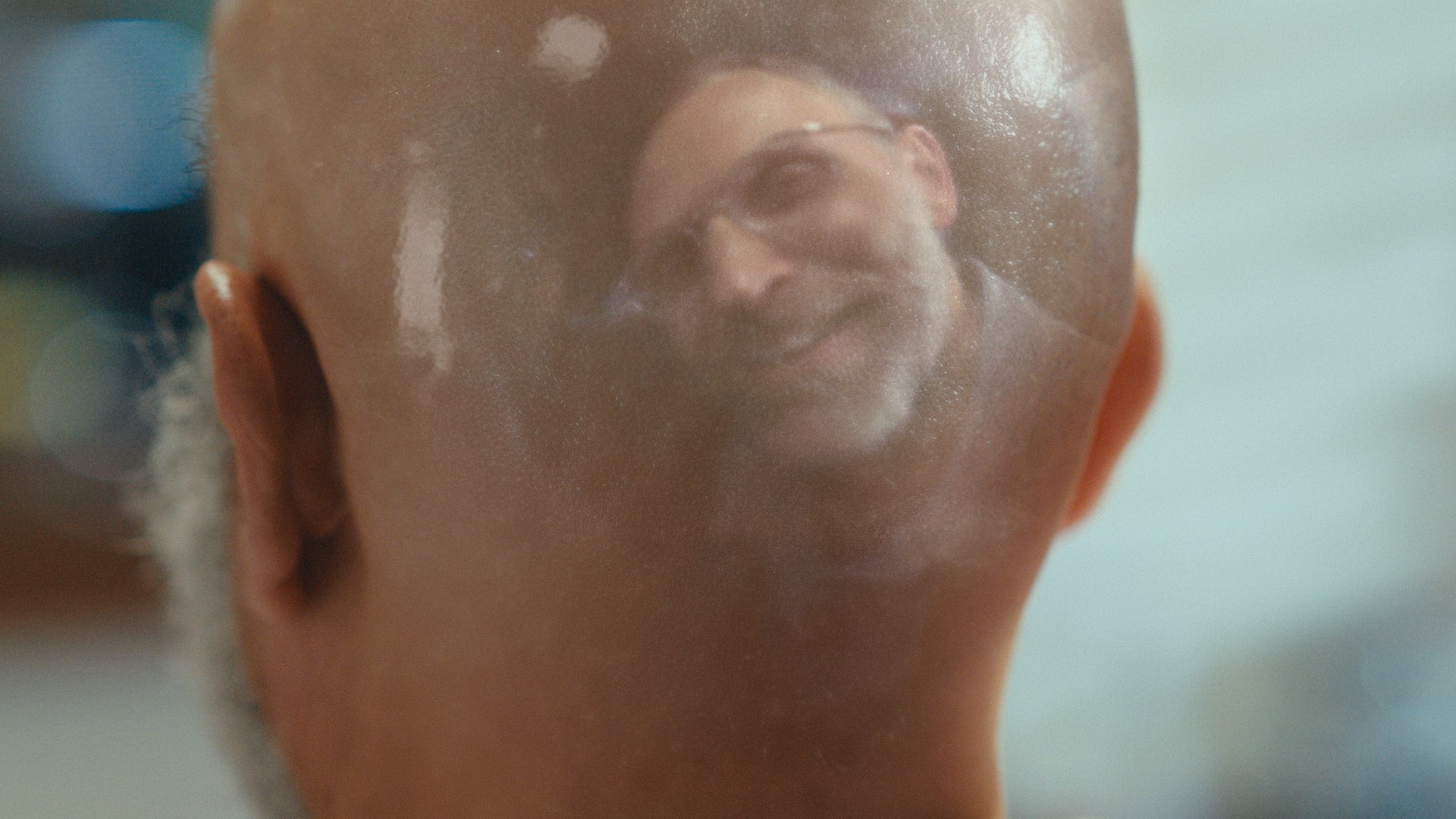 頭を磨き続け、ついには“どれだけツルツルか”を確かめるため、店主が愛するハムスターを客の頭の上で走らせる始末。