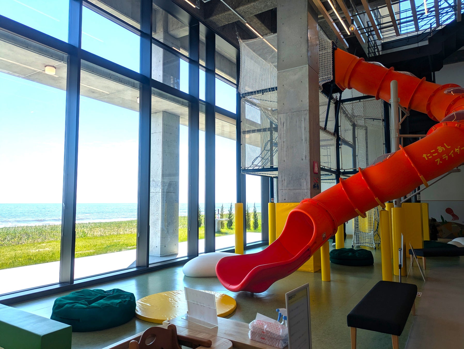 また、すぐ隣にはキッズ・ファミリーパーク「こっこパーク」を併設。大型遊具や赤ちゃんエリアがあり、海を眺めながら子どもを見守れるのも魅力です。