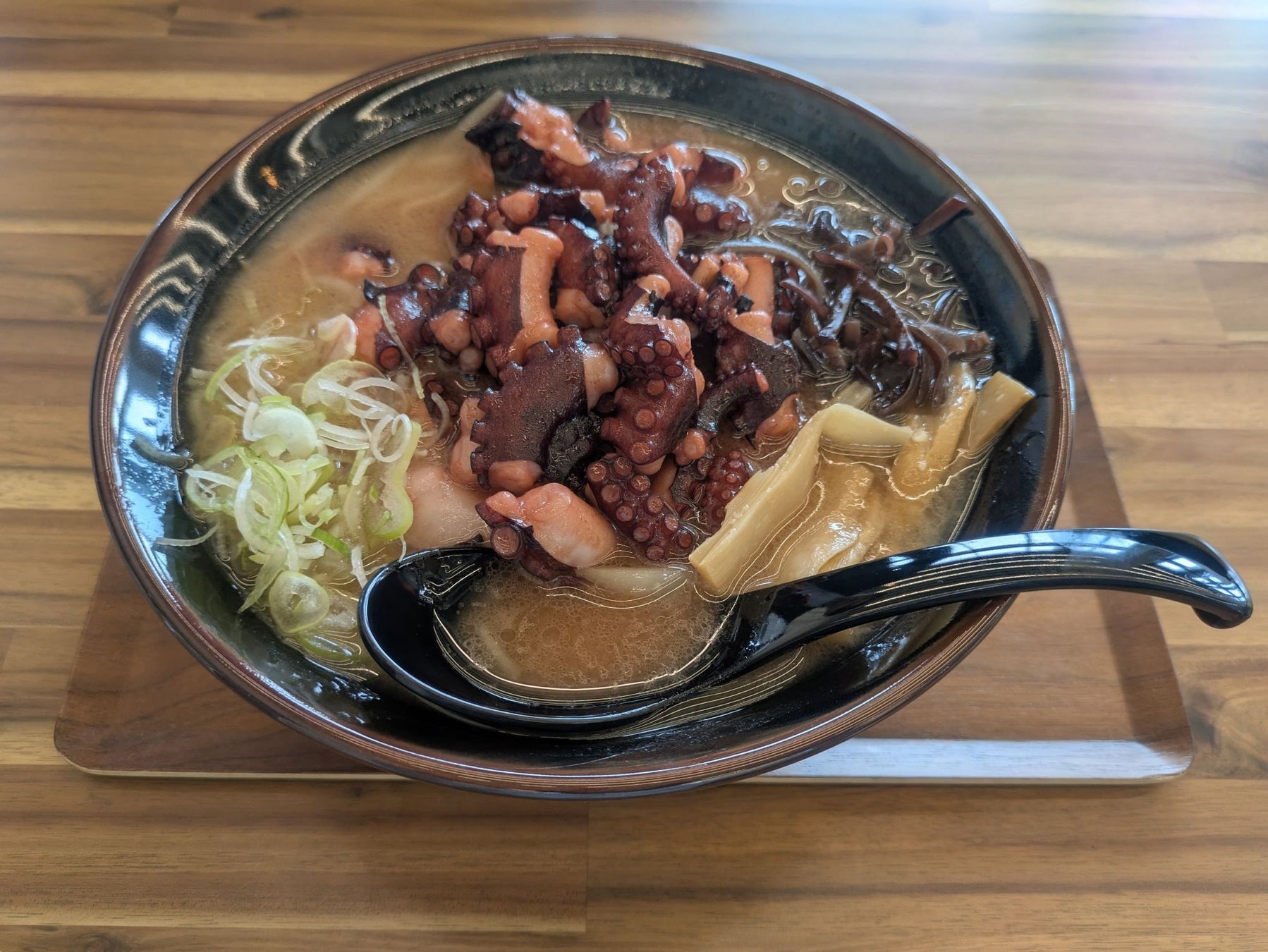 阿寒ポークを使った「豚丼」や根強い人気の「スパカツ」も魅力的ですが、今回は「札幌ラーメン 宝龍」の「白糠マルツボのタコラーメン」をご紹介します!