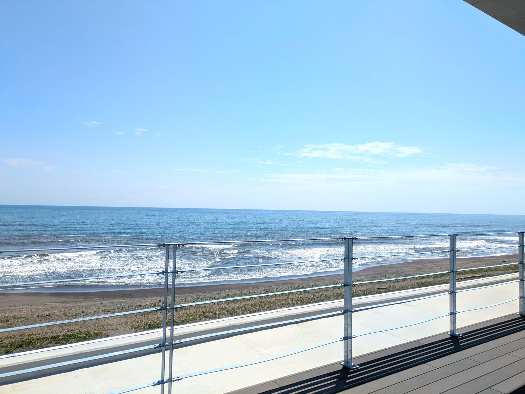 2階には屋上展望スペースがあり、デッキの向こうには広い空と恋問海岸が広がっています。素晴らしい景観を楽しみながら深呼吸をして、海からの爽やかな風を感じてみてください。