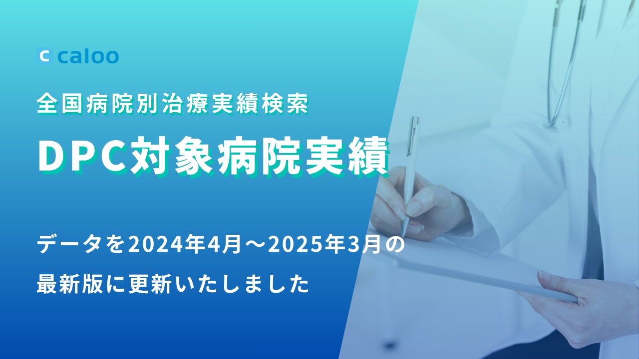 医療機関検索サイト「Caloo」を運営するカルー株式会社が、DPC対象病院実績(全国病院別治療実績検索)を2024年4月〜2025年3月の最新版に更新しました。