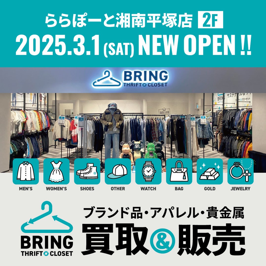 【湘南平塚エリアに初出店】ファッション買取・販売サービス・BRING THRIFT CLOSET(ブリング スリフト クローゼット)が三井ショッピングパークららぽーと湘南平塚に新規出店
