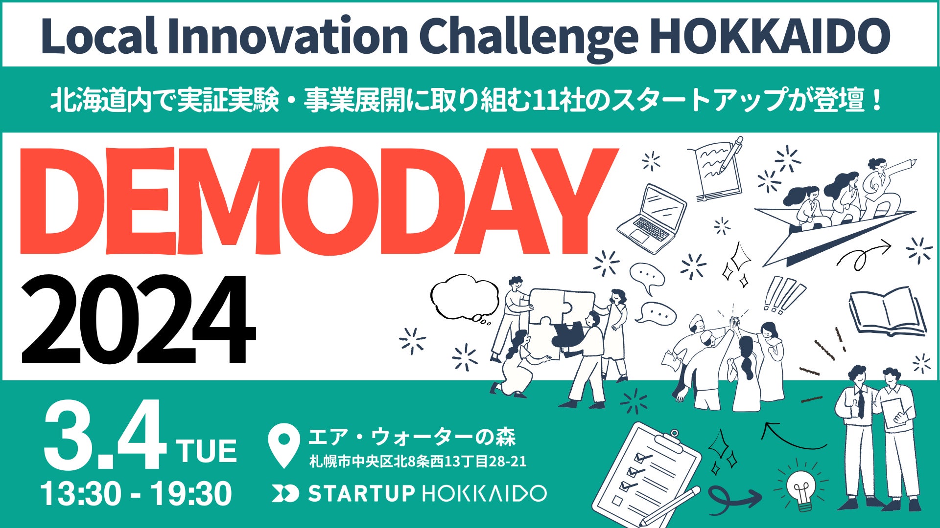 STARTUP HOKKAIDOでは、スタートアップと北海道の自治体・事業者が協力し、地域課題の解決を目指すオープンイノベーションプログラム「Local Innovation Challenge HOKKAIDO 2024」を実施しました。この度、プログラムに参加したスタートアップ各社による成果発表の場として、Demodayを2025年3月4日(火)に開催いたします。