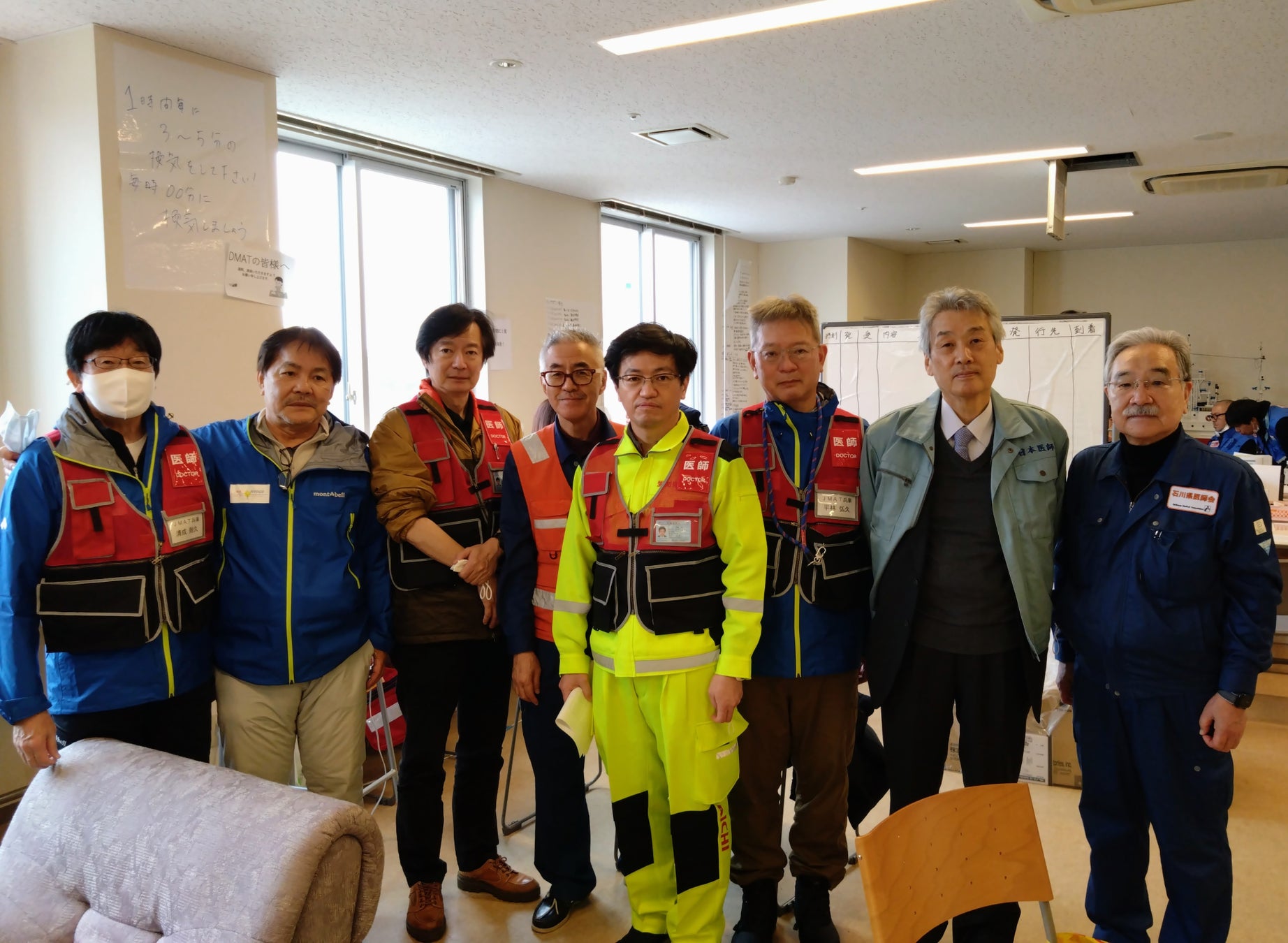 更に、能登地区からの被災者を一時的に受け入れるため、いしかわ総合スポーツセンター(金沢市)に設置された1.5次避難所や、恵寿総合病院(七尾市)、県内の診療所などにも足を運び、現地でJMAT活動を行う医師達を激励しました。