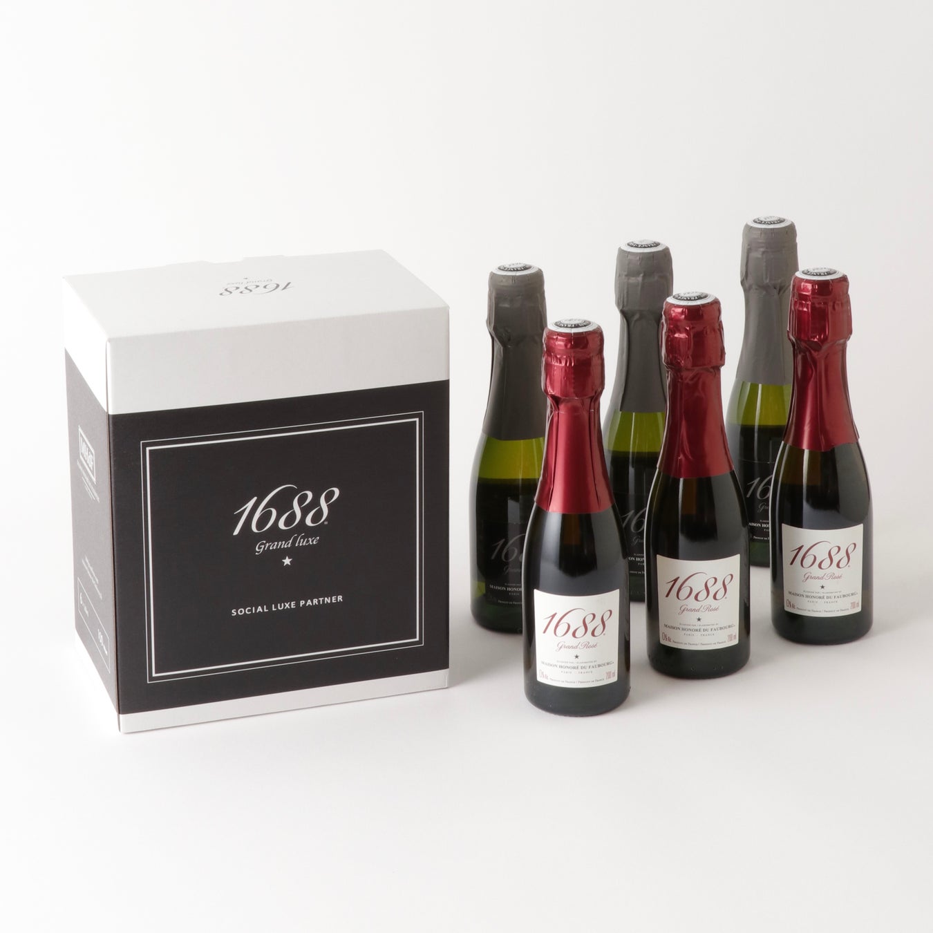 1688の200mlには6本組みのパーティーセット、ペアセットの化粧箱には4種類のレパートリーがあり、季節感のあるプレゼントに最適です。