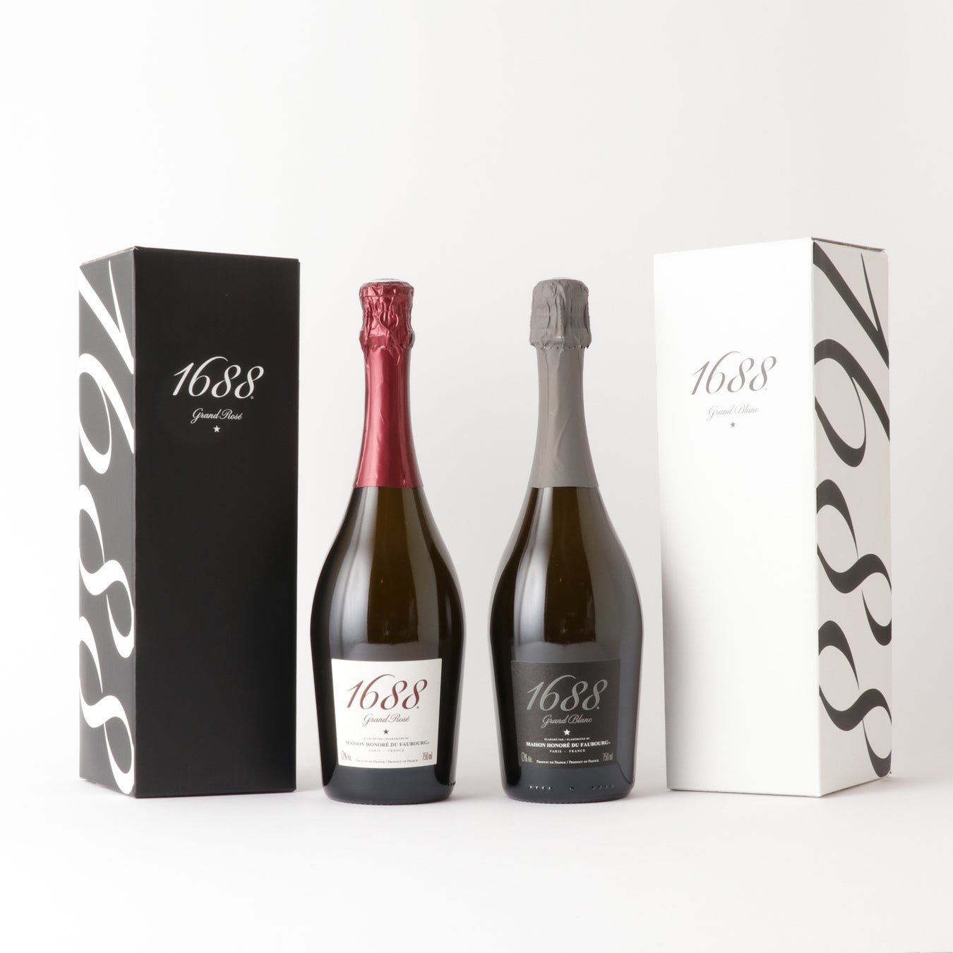『1688 Grand Rosé』『1688 Grand Blanc』『Paris’16 Blanc』の単品は、それぞれ重厚感のある化粧箱入りです。また、クリスタルグラスとのセット商品なども取り揃えており、ブランドマーク入りの手提げ袋などのご用意もございます。