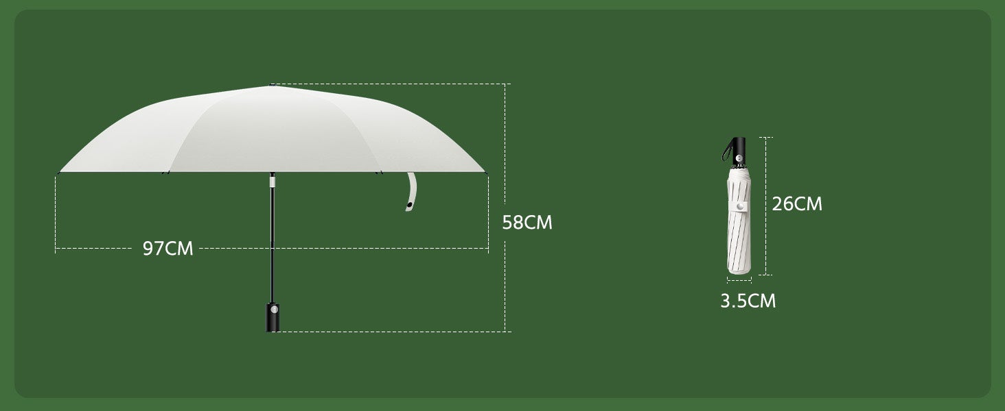 Alwgreenの日傘は、軽量かつ堅牢なガラス繊維とアルミ合金の骨組みを採用しています。収納時の厚みはわずか3.5cmで、重さは約230gと超軽量。ポケットに収まるコンパクトなデザインで、通勤や通学、旅行にも最適です。