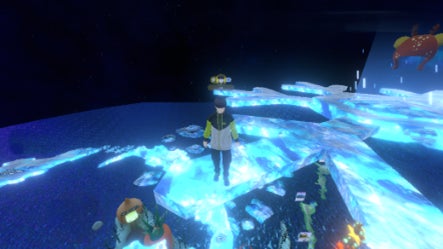 天空へ続くアスレチックを登り、一番上まで到着すると、メタバース内のアバターで使用できる、「なりきりキュンちゃん帽子」をゲットできます。