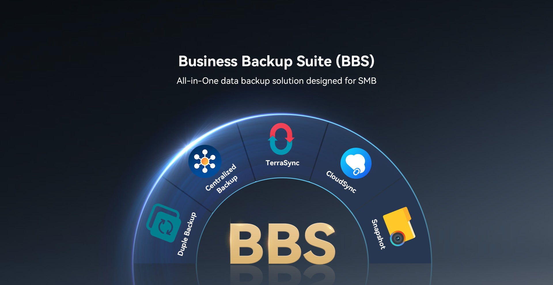 TERRAMASTERは、企業向けのデータバックアップの効率とセキュリティをさらに強化するため、BBSビジネスバックアップスイートを同時に発表しました。このスイートは、Centralized Backup、TerraSync、Duple Backup、CloudSync、Snapshotなどの先進的なバックアップソフトウェアを統合し、強力なデータ暗号化技術とインテリジェントな管理機能を備えています。これにより、バックアップ計画を自動的に実行でき、人為的なミスを削減するだけでなく、クラウド同期やリモートバックアップにも対応し、どんな状況下でもデータを安全に守ります。