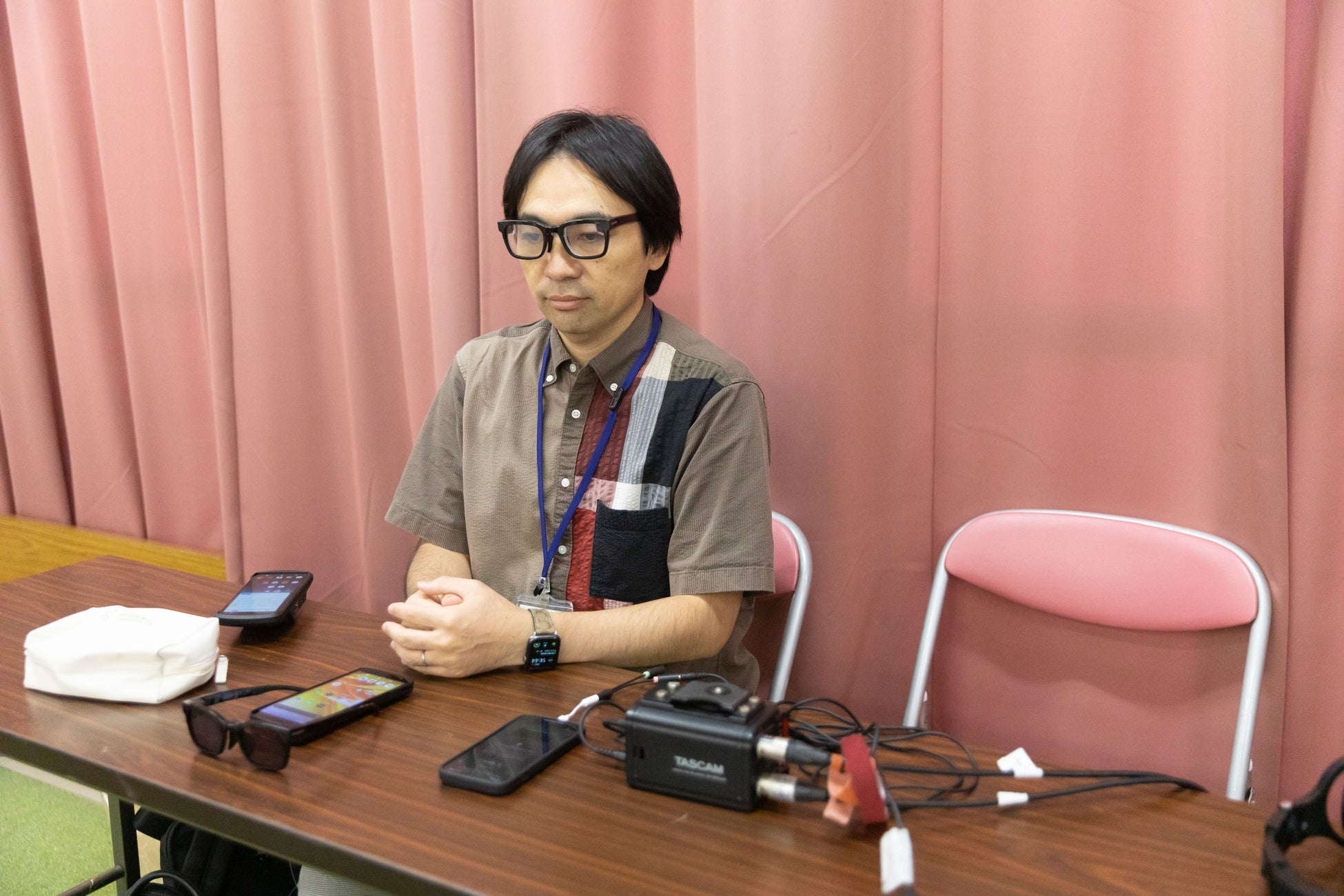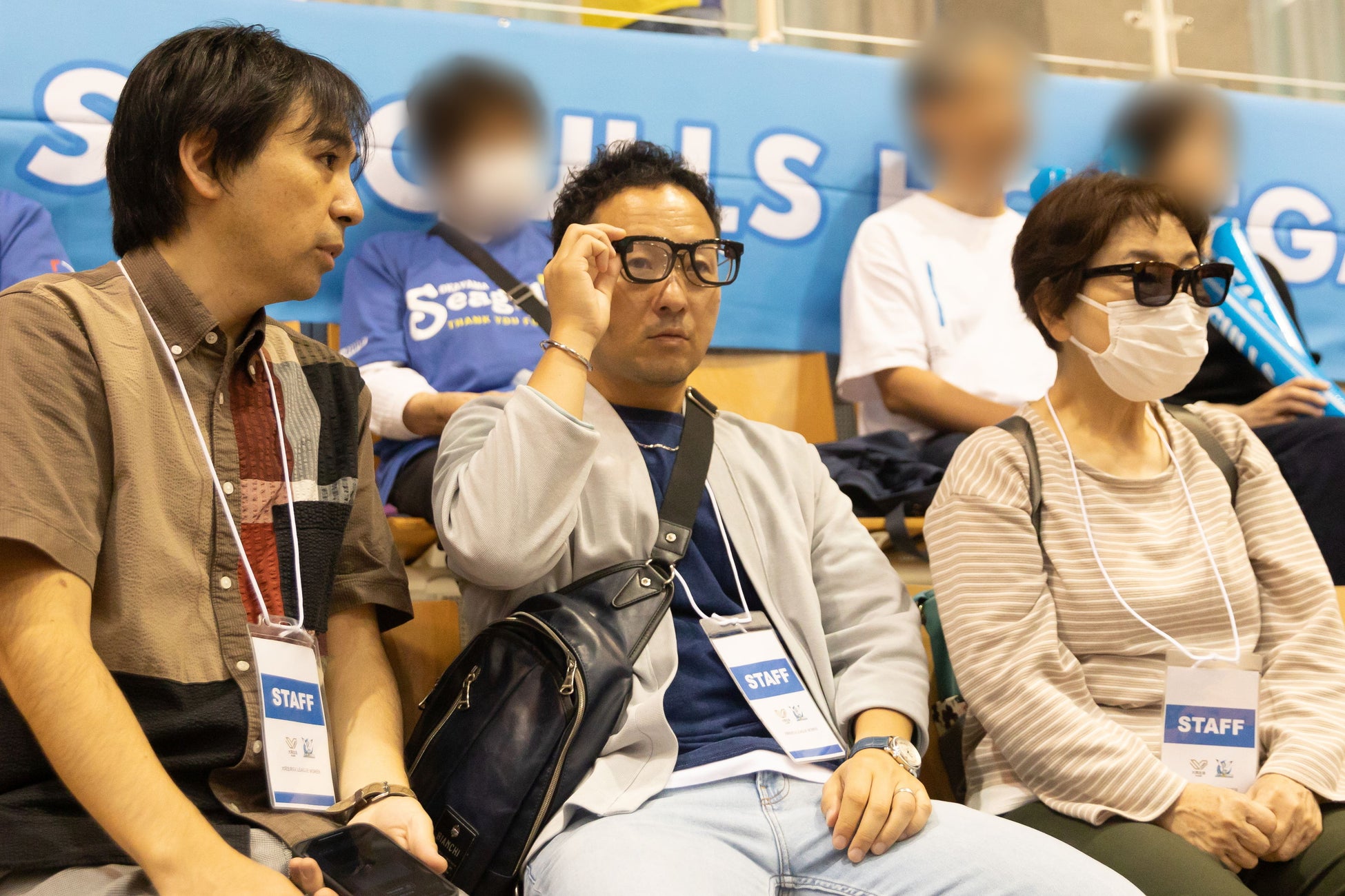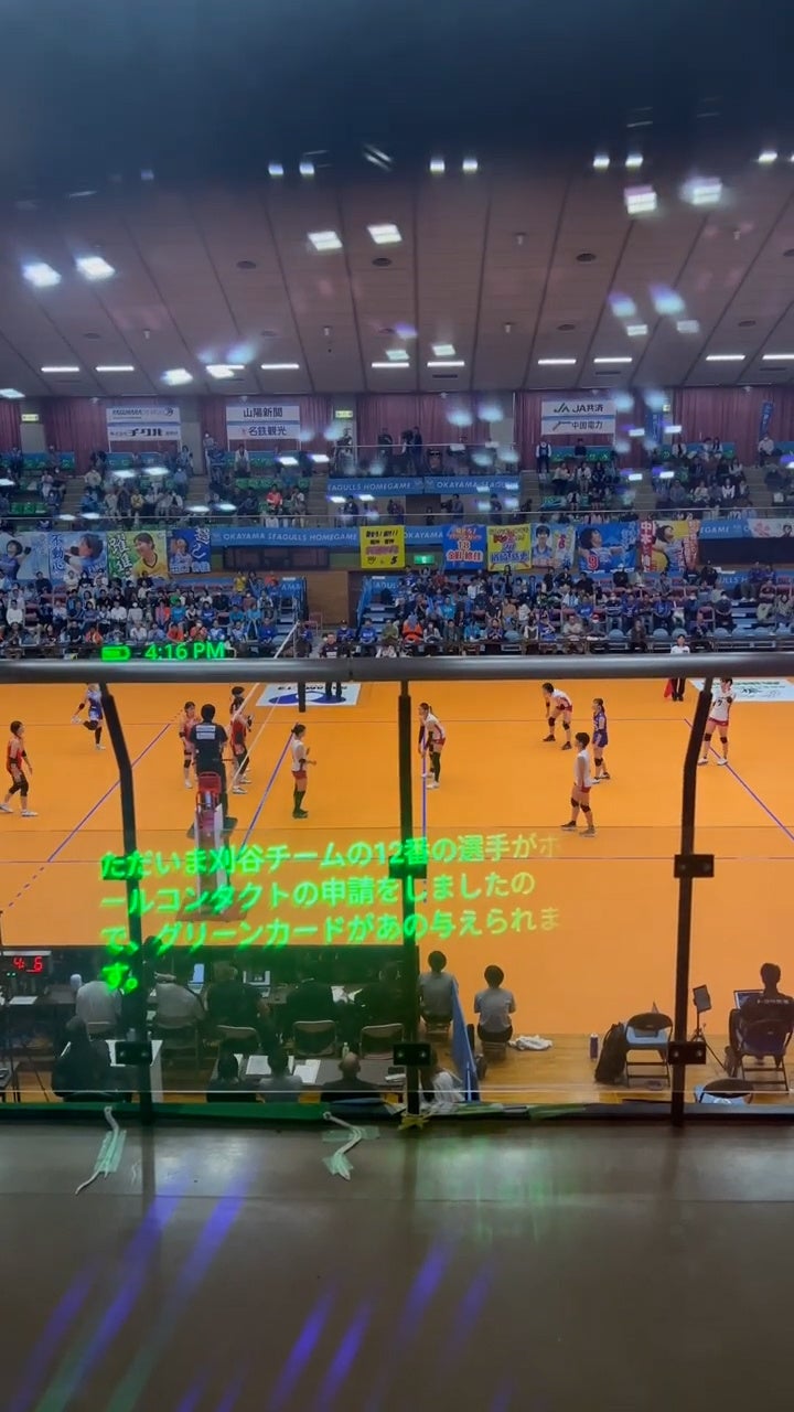 まずは『2024-25 大同生命SV.LEAGUE WOMEN』の岡山シーガルズ開幕戦でありホームゲームでもある10月12日・13日の赤磐大会で検証を行い、スタジアム・アリーナDJの音声を正確に表示するためのスマートフォン(音声をテキスト化するためのデバイス)への音声入力方法を複数パターンから検討すると共に、試合中の視線移動などを含めて、スマートグラスへのテキストの表示位置の検討を行いました。