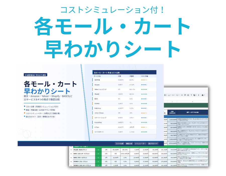 月商100万円でもコスト差が年間168万円。21サービスの実質コストを一括比較した「各モール・カート早わかりシート」を無料公開