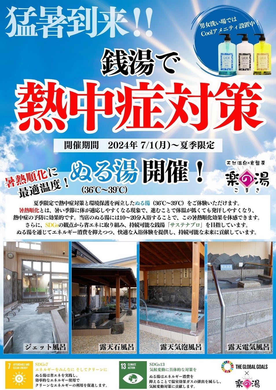 持続可能な銭湯「サステナブロ」な取り組み ぬる湯で夏を乗り切ろう!「天然温泉こまき楽の湯」が熱中症策とSDGsに挑戦