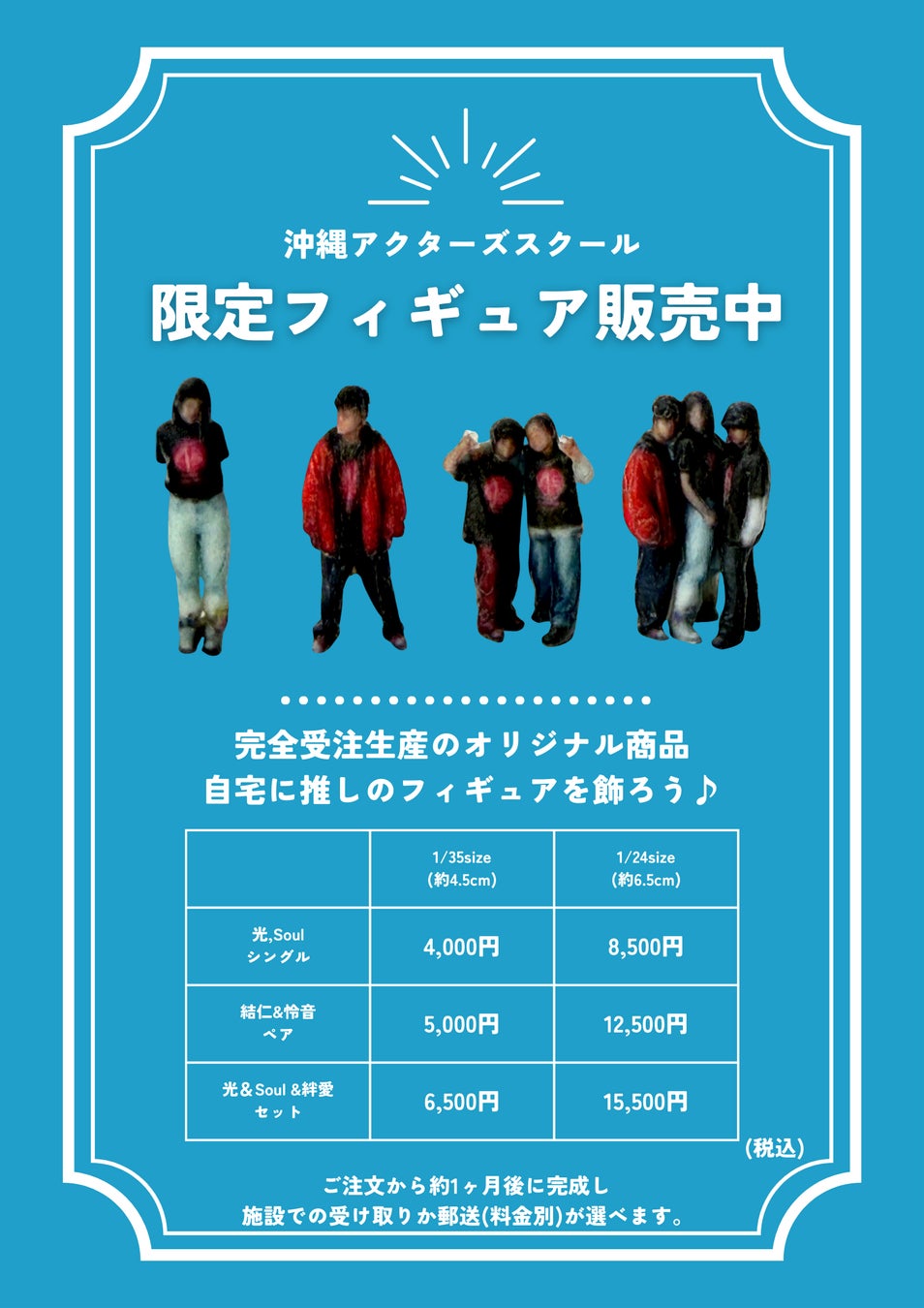 沖縄アクターズスクールの玉城光、Soul、絆愛、桃原結仁、又吉怜音のミニチュアフィギュアをイベント期間限定で販売します。