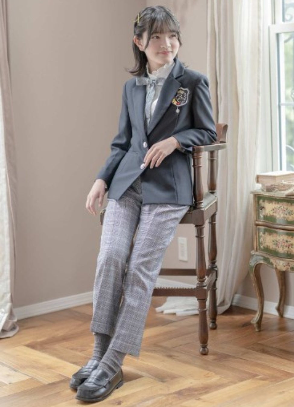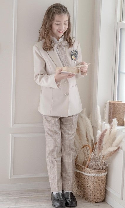 ここ数年人気上昇中なのが、女の子のロングパンツスーツ! 小学校高学年になると、普段からあまり足を露出したくないと考える女の子もいるため、女の子のためのパンツスーツを作りました。