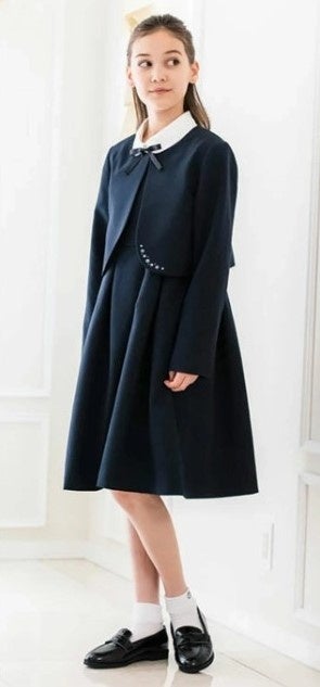 シンプルできちんと感が引き立つかわいらしさのスーツセットは、時代、年齢問わず、いつでもだれからでも好感度大。