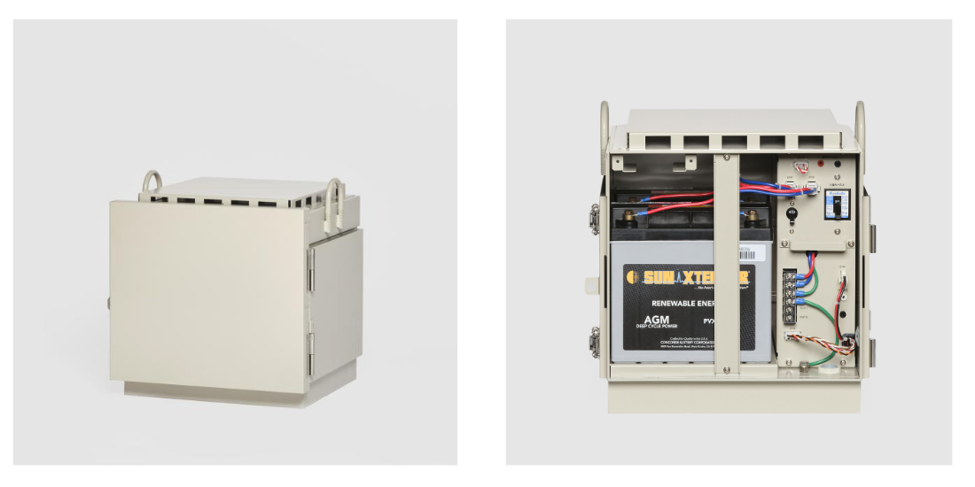 ・商用電源が確保できない河川敷や山間部などに設置する太陽光パネルと接続した電源