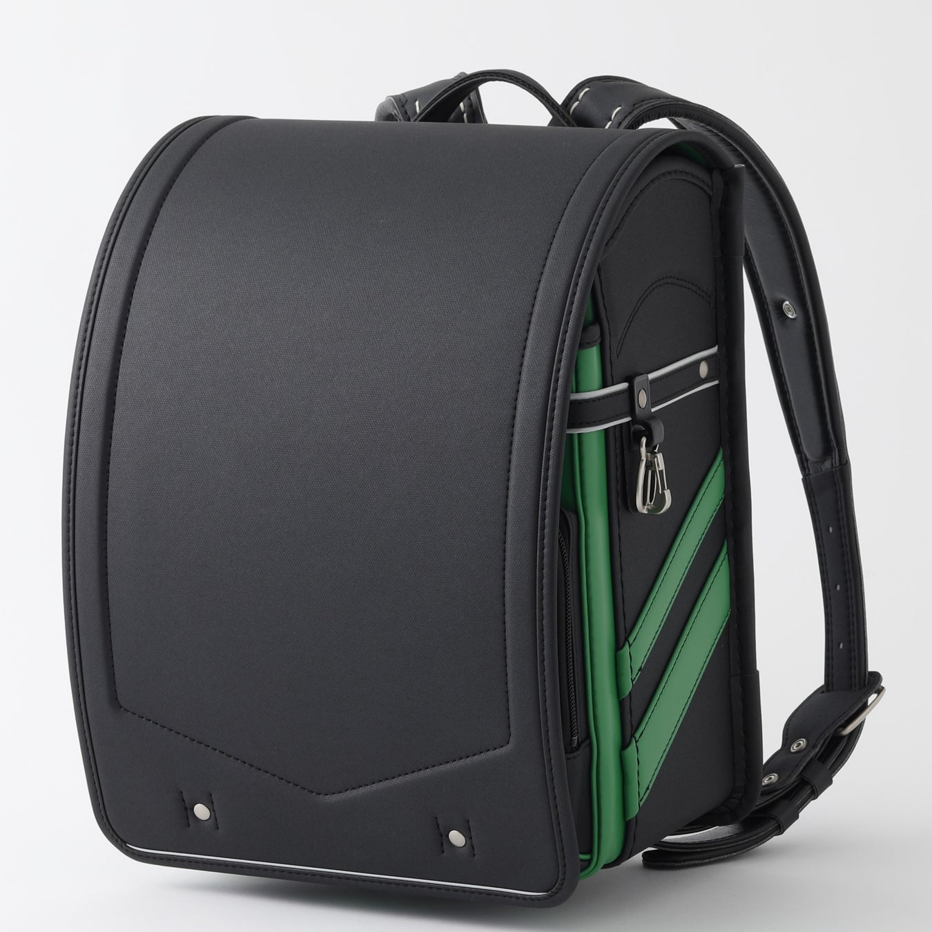 人工皮革の表面加工を施しキズがつきにくい耐久性重視のランドセルです。ブラックをベースに鮮やかなコンビカラーでスポーティなイメージのデザインです。