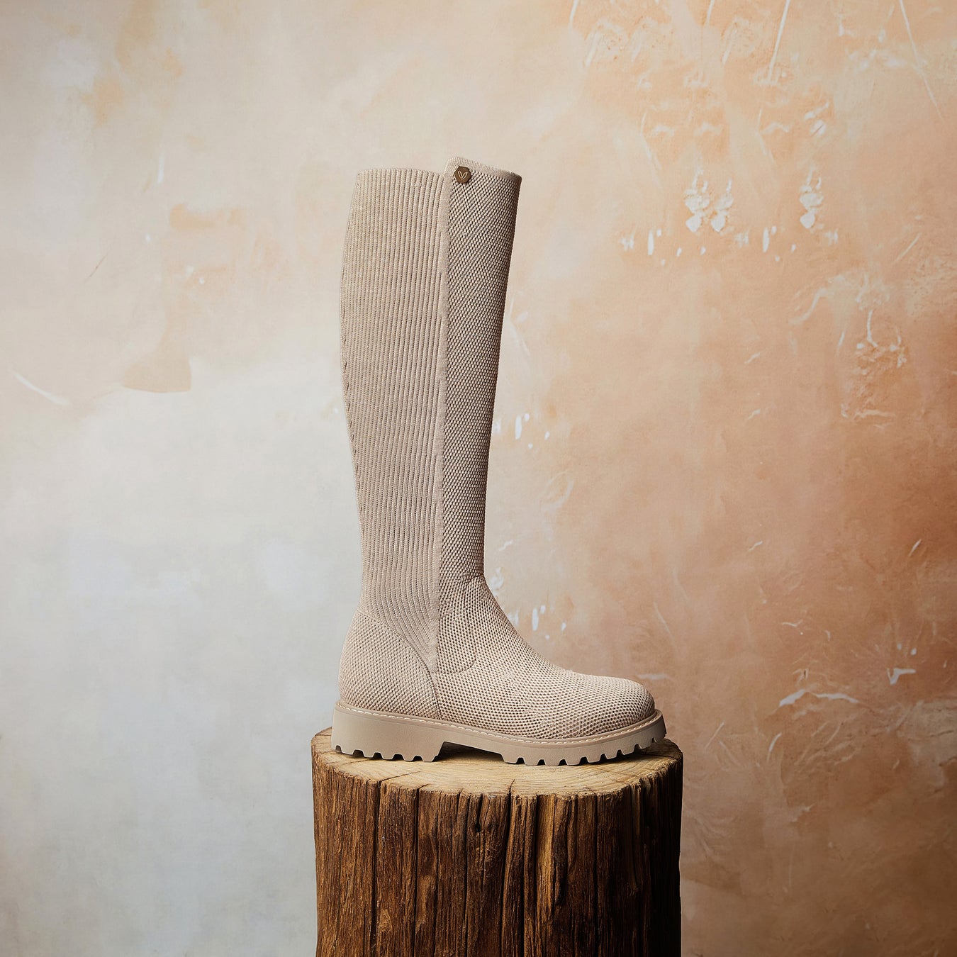 「Rita」はニット素材とミニスクエアトゥのシルエットが美しい2wayブーツ。柔らかいストレッチニットアッパーがソックスのように優しく足を包み込んでくれるため、暖かさはもちろん窮屈さが無くストレスフリーに履いていただけるアイテム。レッグウォーマーのON/OFFで大きく印象を変えられるため、まるでブーツを2足買ったような幅広いファッションが楽しめます。今年のトレンドを取り入れられるだけでなく、快適に長時間履くことができるまさに理想的なロングブーツです。