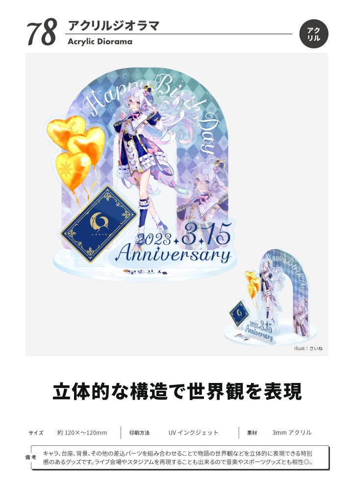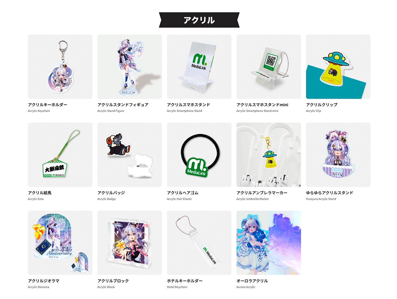 人気のオーロラアクリルやホロ加工缶バッチを追加し、総数80点以上のオンデマンドグッズを公開!