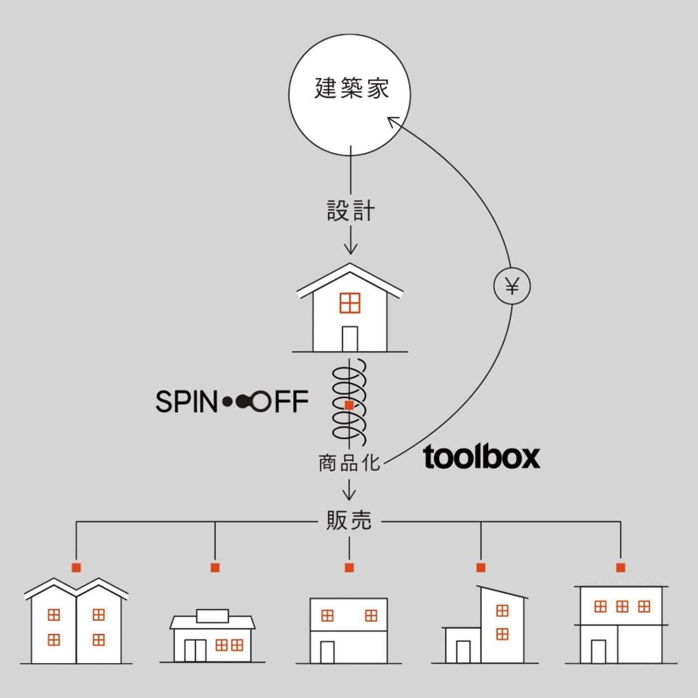 「SPIN-OFFプロジェクト」は、建築家による、ドアハンドル・棚受けのようなパーツ類、建具や手摺、キッチン、洗面台、照明などの造作アイテムを募集し、当社が商品化するというプロジェクトです。建築設計の中で生まれた「誰かのためのデザイン」が、商品としてたくさんの人の手に渡っていく。そうすることで、より多くの人の家づくりが豊かになる、という思いから始まりました。