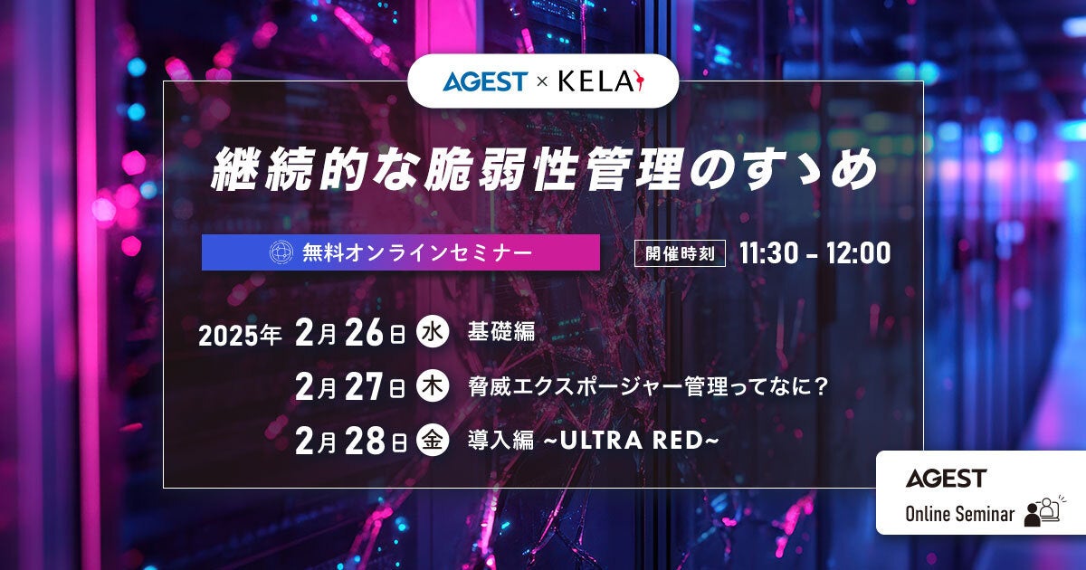 AGEST、継続的な脆弱性管理の重要性をテーマに無料セキュリティWebセミナーを開催【2月26日(水)~2月28日(金)】