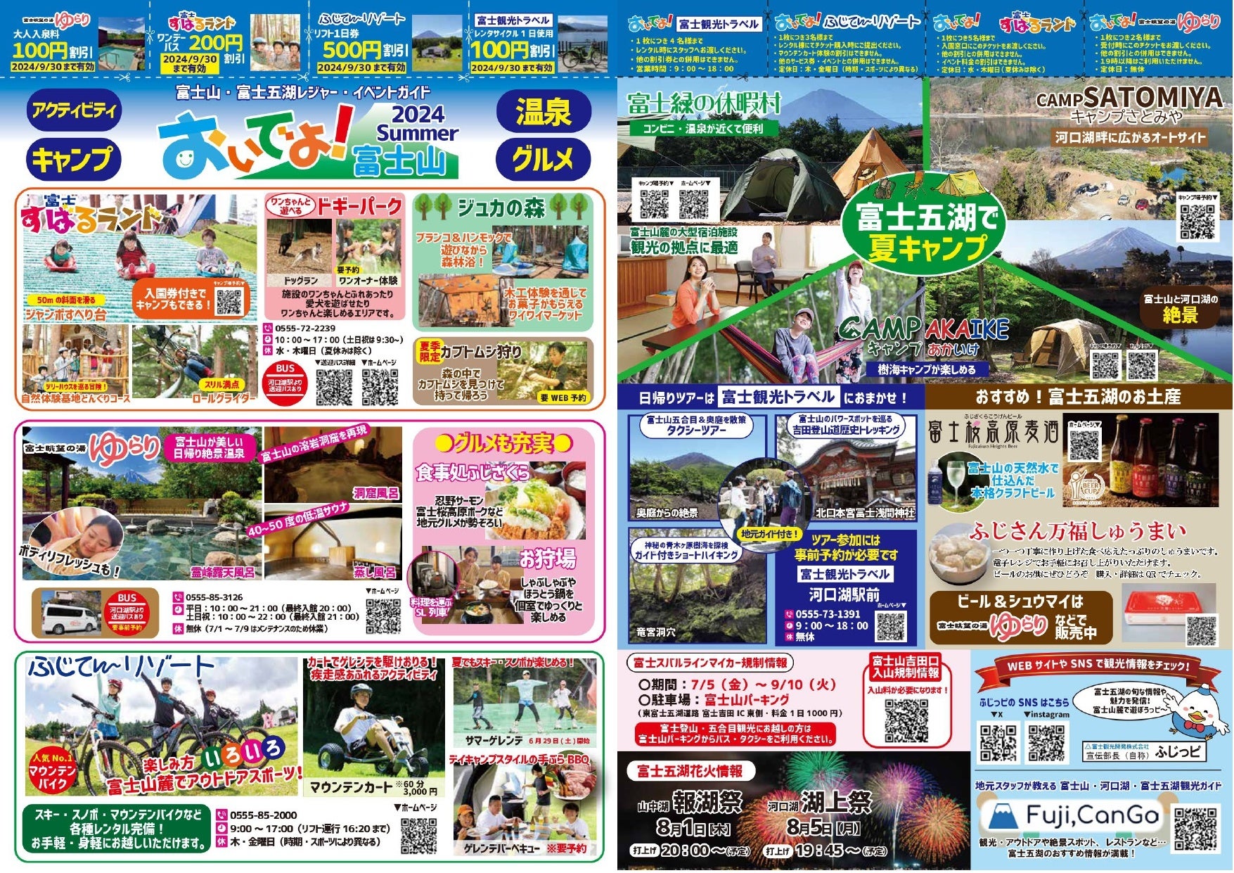 富士観光開発株式会社(本社:山梨県南都留郡富士河口湖町船津3633-1 代表取締役 志村和也)は2008年から季節ごとに発行している観光情報チラシ「おいでよ!富士山」の特別版を2024年7月から新たに発行・配布いたしました。