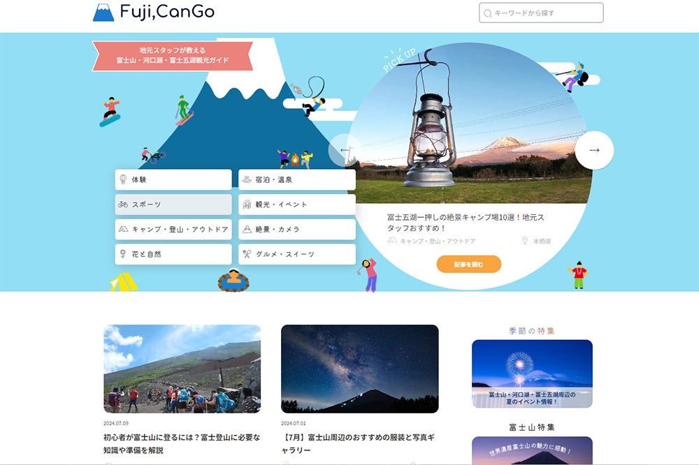 Fuji,CanGoは富士観光開発が運営している富士山・富士五湖エリアのレジャーやグルメ、イベント情報を発信する観光情報サイトです。