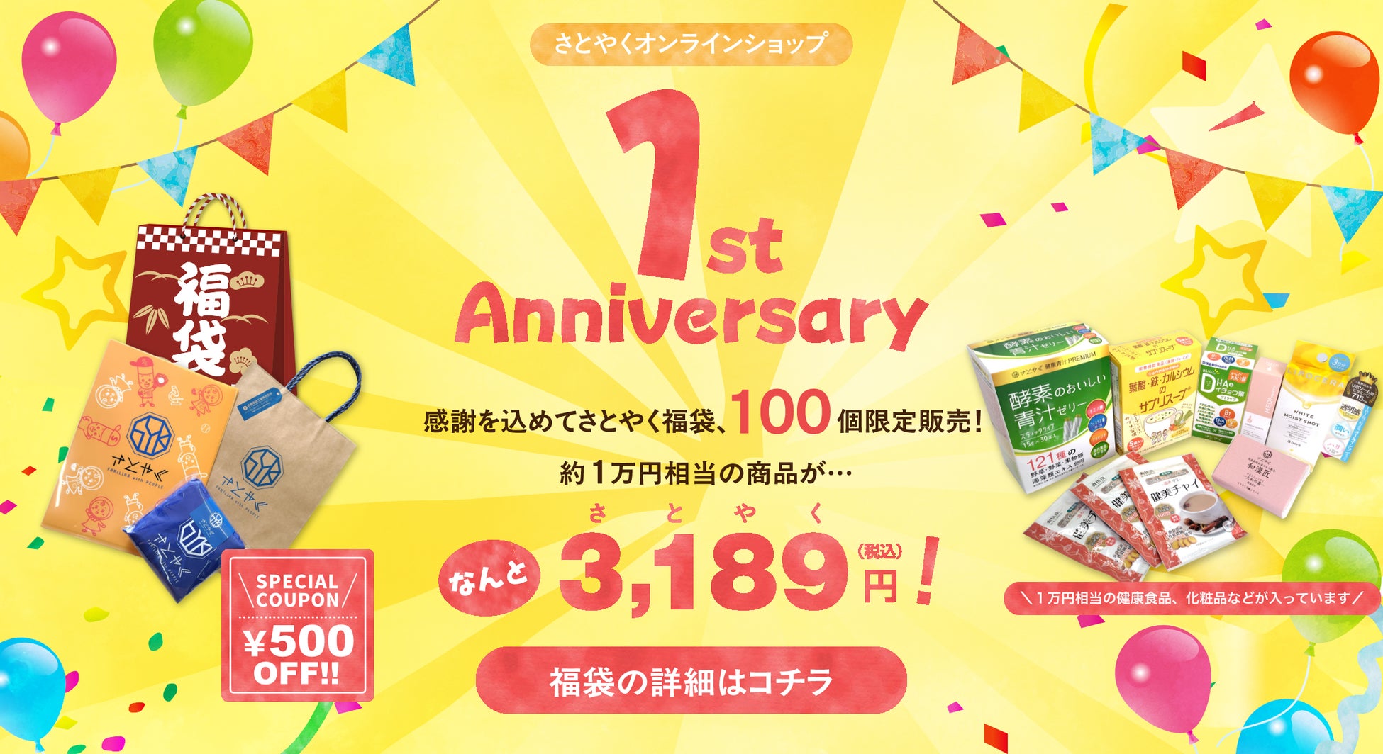 さとやくオンラインショップ1周年を記念したさとやく福袋を発売