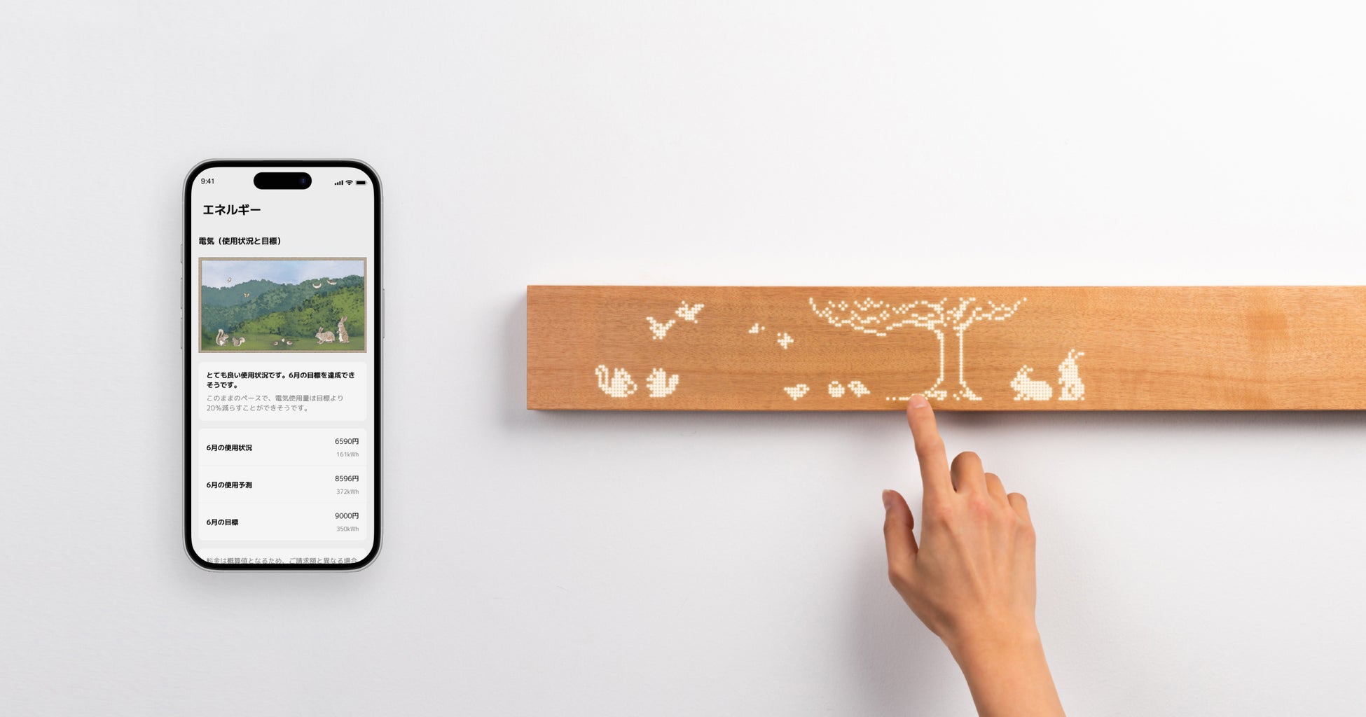 グッドデザイン賞受賞のHEMSコントローラー「muiボード」により、「HOMETACT」の操作性を拡張。アプリや音声操作に加えて、天然木のインターフェースからも操作可能に。くらしに調和するデザイン性や、家族とのコミュニケーションを豊かにする体験価値を付加。