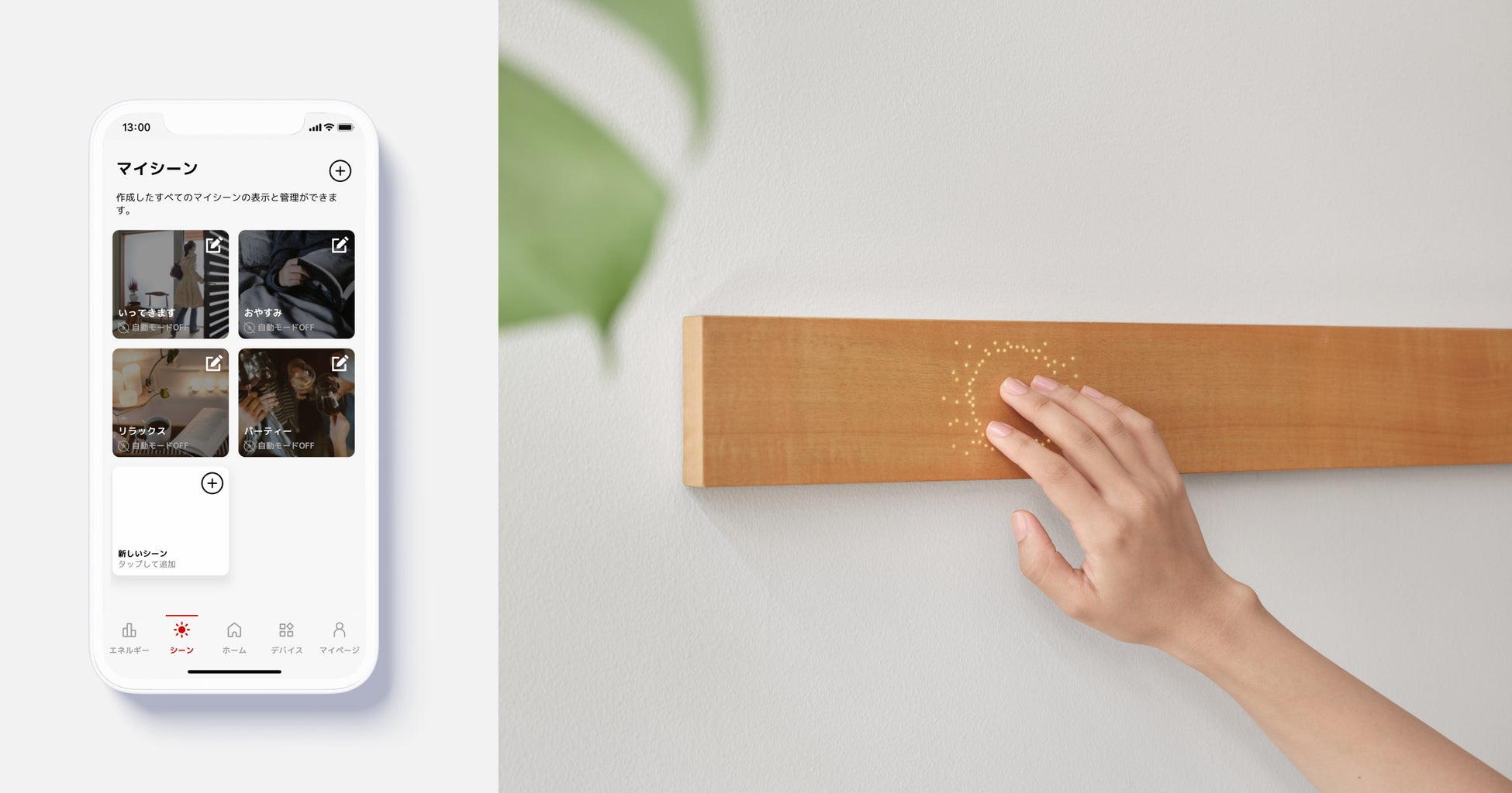 「いってきます」や「おやすみ」などのシーンに合わせて、家全体の設備を一括操作できる「HOMETACT」の「シーン」機能。本連携により、「muiボード」からも「シーン」の呼び出しが可能となり、家族全員がより自身のライフスタイルに合わせて、直感的に操作できるようになりました。