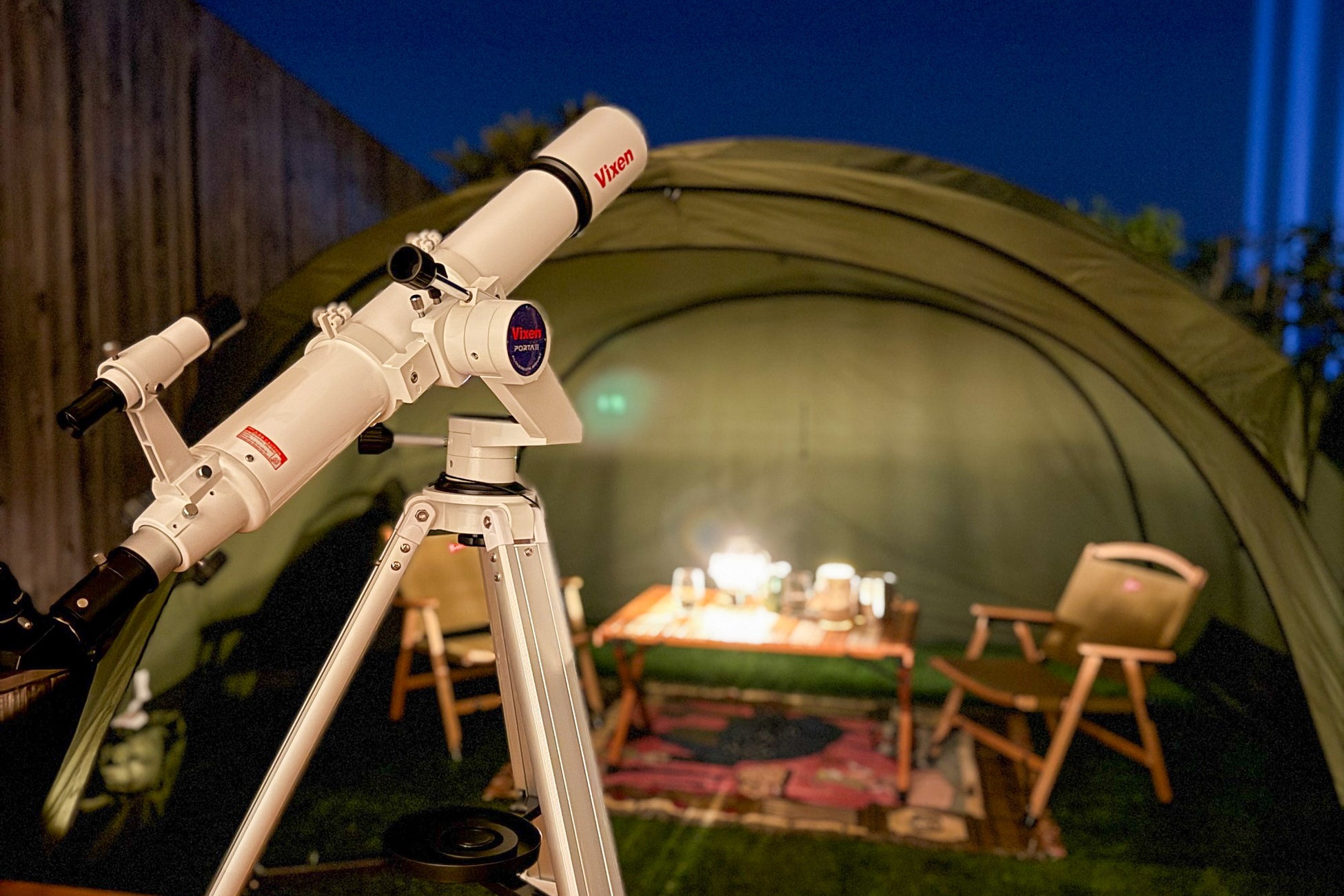 夏休みを迎えるファミリーには、お子さまがテント内で木のおもちゃを使って遊ぶ様子を見守りながら、大人もアウトドア気分を満喫できる特別な空間となっています。客室には星空観察用の望遠鏡も設置されており、昼夜通して自然を感じられる特別仕様のお部屋となっています。