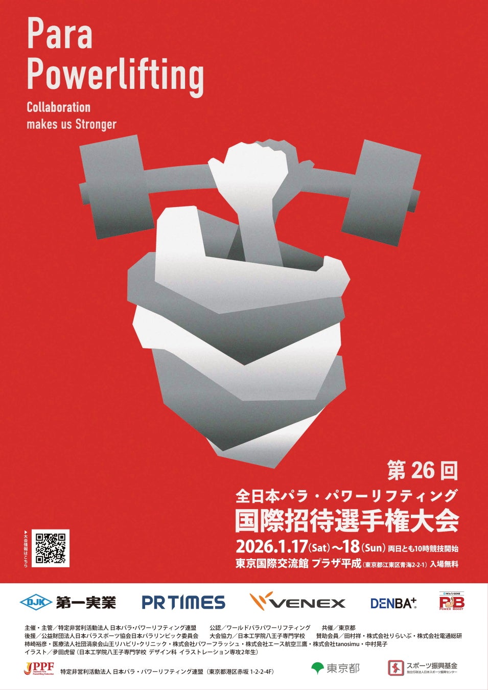 2026年1月17日~18日に開催する「第 26 回全日本パラ・パワーリフティング国際招待選手権大会」(会場:東京国際交流館プラザ平成)(東京・お台場)。今大会に、モンゴルから107Kg超級の東京2020金メダリスト、Sodnompiljee Enkhbayar選手 の参加が決定しました。本大会は、日本を含む5カ国(モンゴル・韓国・台湾・カザフスタン・日本)の選手が参加する国際招待大会として開催されます。