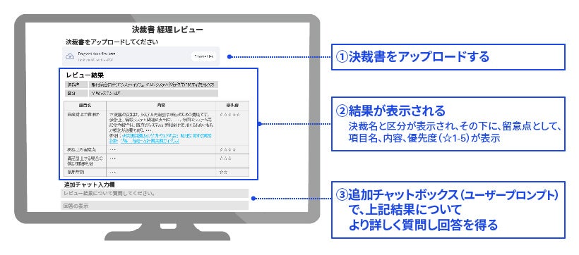 ユースケース:決裁書分析(事業部から本社に提出される決裁書を人の代わりに生成AIが理解し、会計/税務上の留意点を出力)