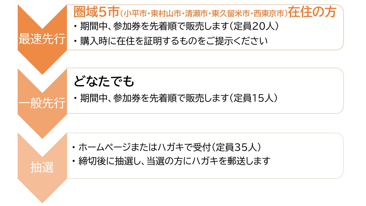 定 員: 70人(最速先行販売 先着20人、一般先行販売 先着15人、抽選 35人)