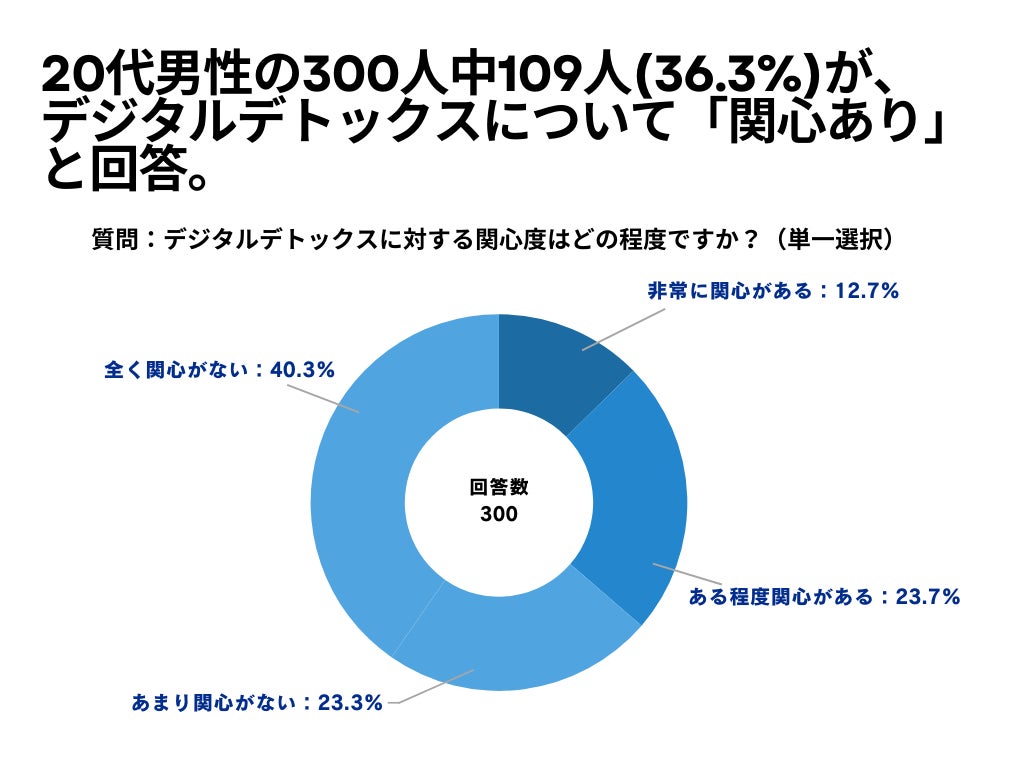 20代男性の300人中109人(36.3%)が、 デジタルデトックスについて「関心あり」と回答【デジタルデトックスに関するアンケート】