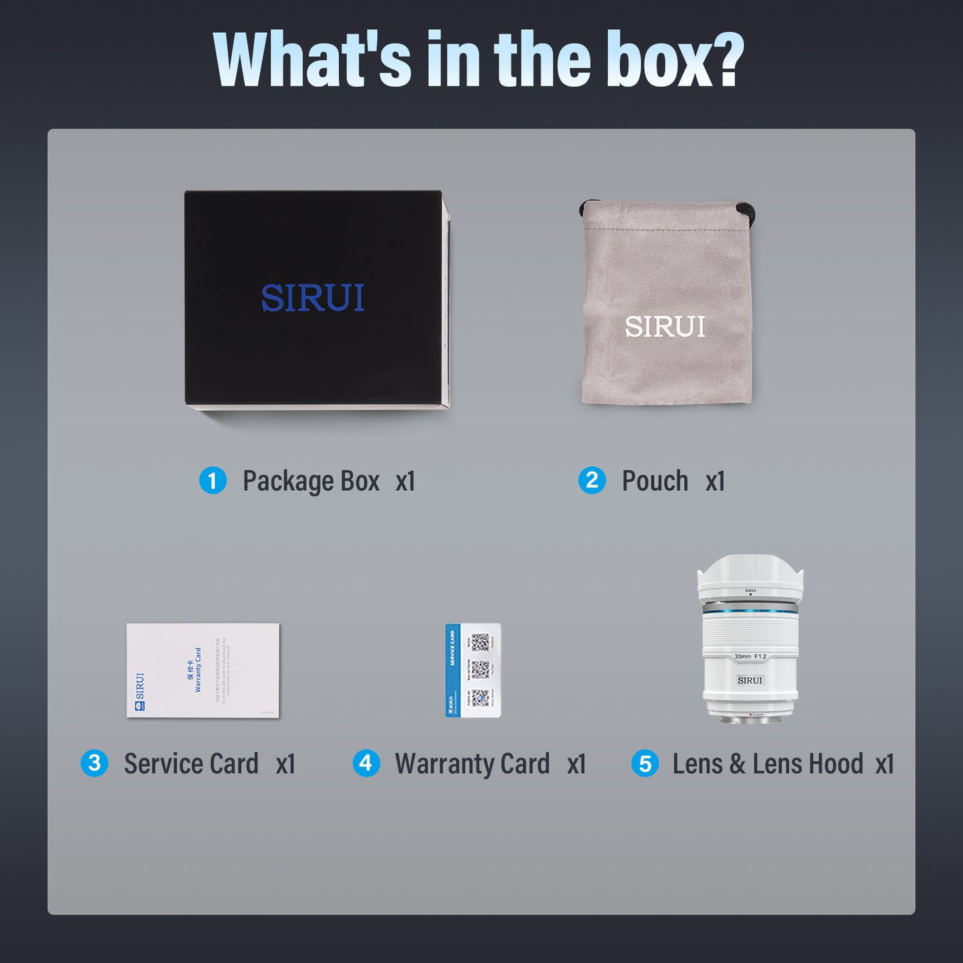 SniperシリーズAPS-Cオートフォーカスレンズセットは、Sirui初のオートフォーカスレンズセットで、焦点距離23mm、33mm、56mmのレンズが含まれています。E/X/Zマウントが用意され、オプションで黒、白、シルバーの3色があります。f1.2の超高速絞りと手頃な価格のレンズは、最高の撮影パートナーとなるでしょう。
