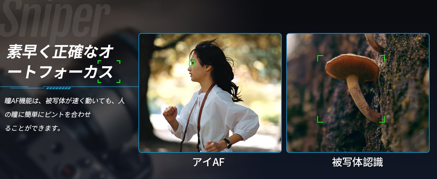 【迅速かつ静かなオートフォーカス】STM(ステッピング)フォーカスモーターを採用したSIRUI Sniperレンズは、瞳AFトラッキングをサポートし、高精度かつ驚くべき鮮明さで被写体をロックします。