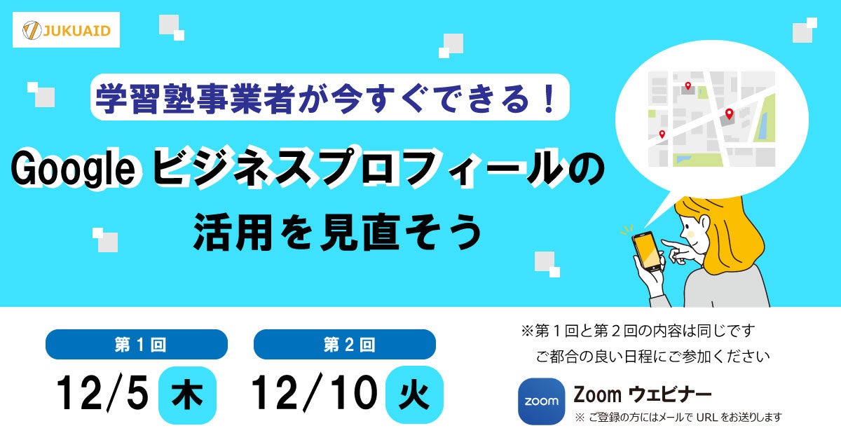 塾エイド主催にて、「今すぐできる」をテーマに、GBPの活用方法について紹介いたしました。